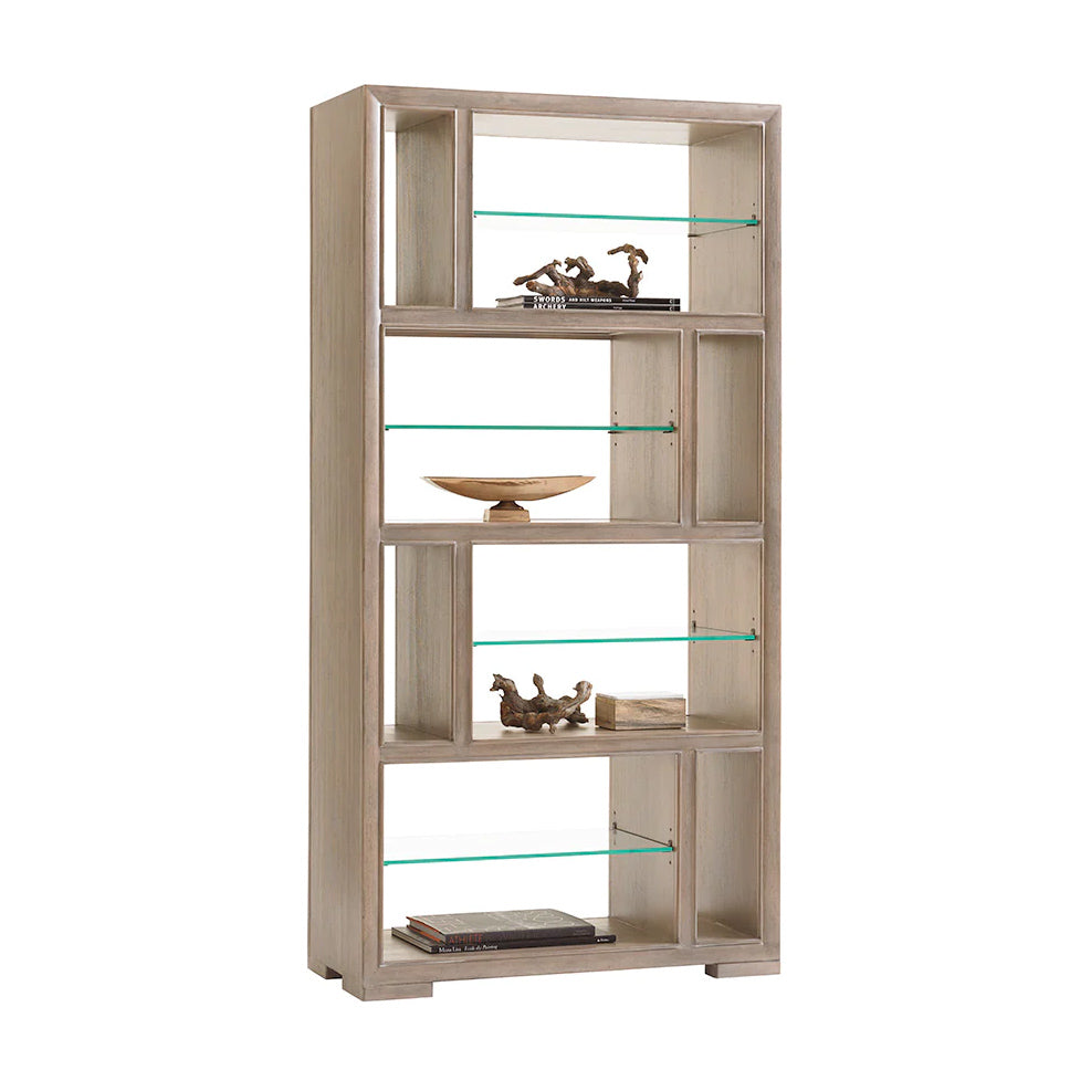 The versatile open bookcase makes a strong design statement as a single unit or bunched in a grouping. The piece is finished on all sides, allowing it to float as a room divider. The vertical partitions are stationary and the four glass shelves are adjustable. The trend in interior design continues to move in a decidedly contemporary direction, while lifestyle aspirations are becoming increasingly casual.