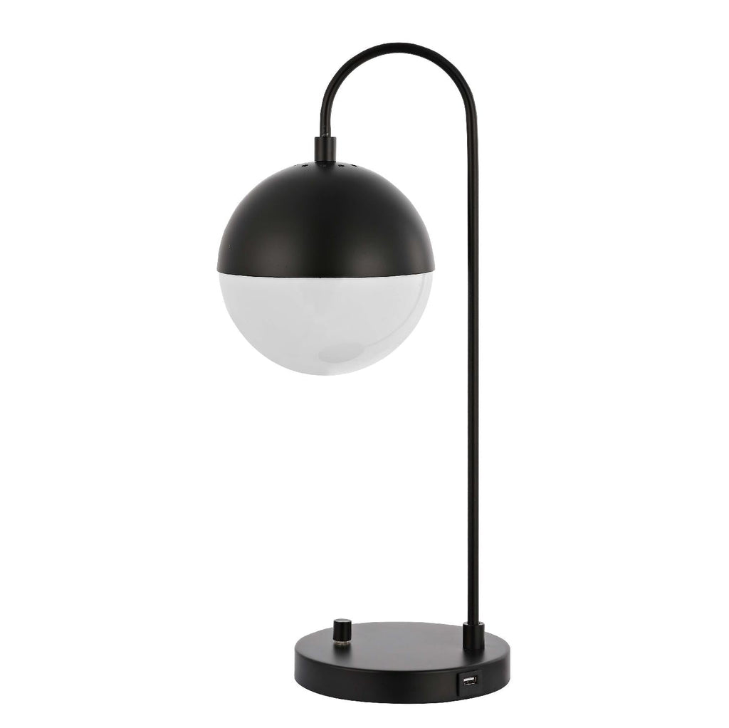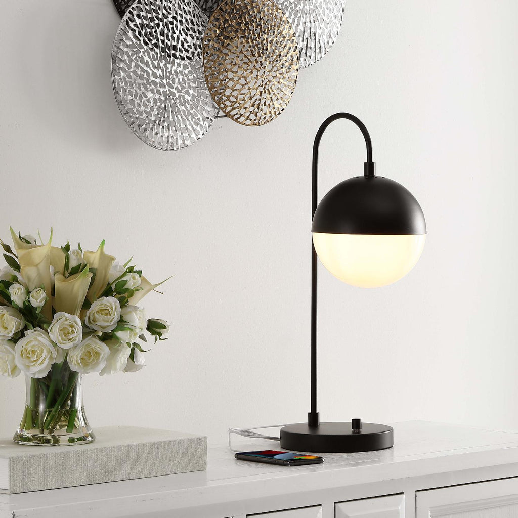 Inspired by edgy Mid-Century modern style, this retro-chic Cappi Table Lamp steals the show in any room. Designed with a luxurious modern finish, Cappi diffuses light from a white acrylic globe shade to create a warm, captivating glow, while a built-in USB port makes for effortless charging.