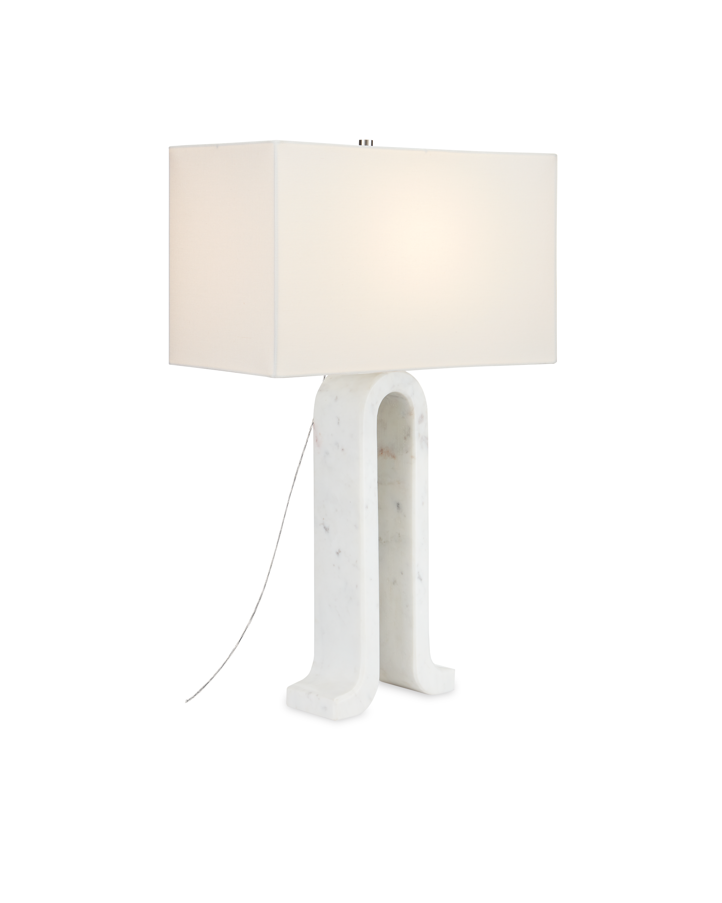 The Leo Table Lamp, designed by Clarence Mallari, gets its name from the fact it's a stylized symbol for the astrological sign. The process to manufacture it is rigorous because it takes a special carving machine to pull off the shape. That's because it is one seamless piece of white Indian bonswara marble. Clarence notes that this is one of his designs that inspired him to push into new territory in design.