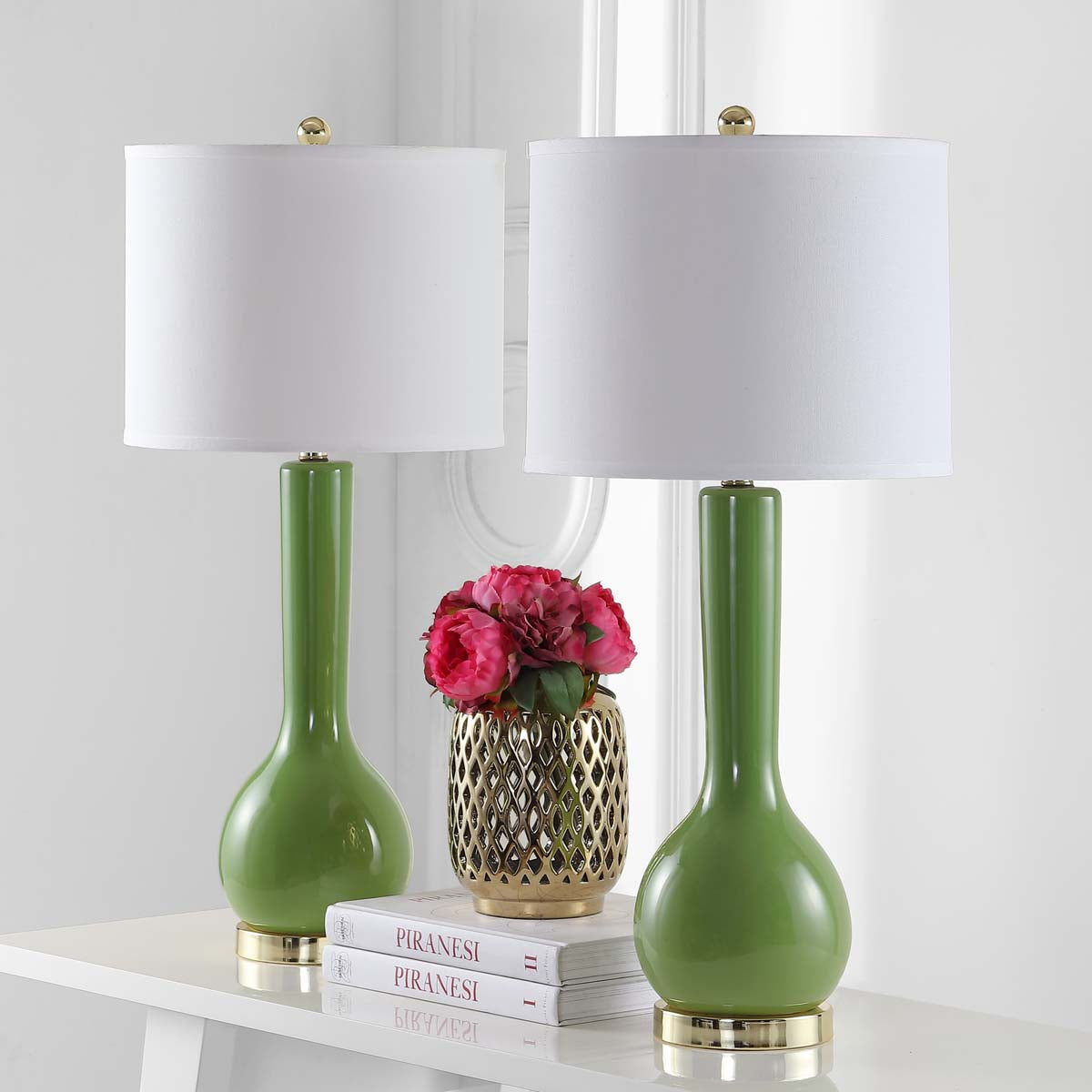 Safavieh Mae 30.5 Inch H Long Neck Ceramic Table Lamp-Green (Set of 2)
