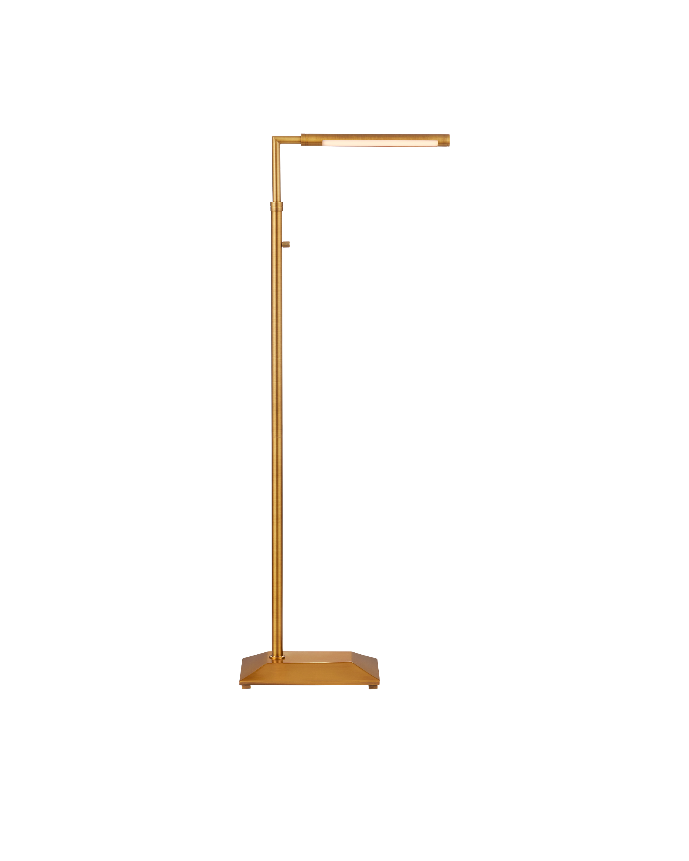 The Autrand Brass Floor Lamp is a nimble fixture that focuses illumination wherever it is needed most, as it swivels from side to side and the tubular shade on the top arm can be maneuvered to cast light up, down, or right to left. Made of metal in an antique brass finish, the simple lines of this gold floor lamp make it great for any number of interior styles, including contemporary. The fixture has a dimmer switch and is lit with integrated LED technology.