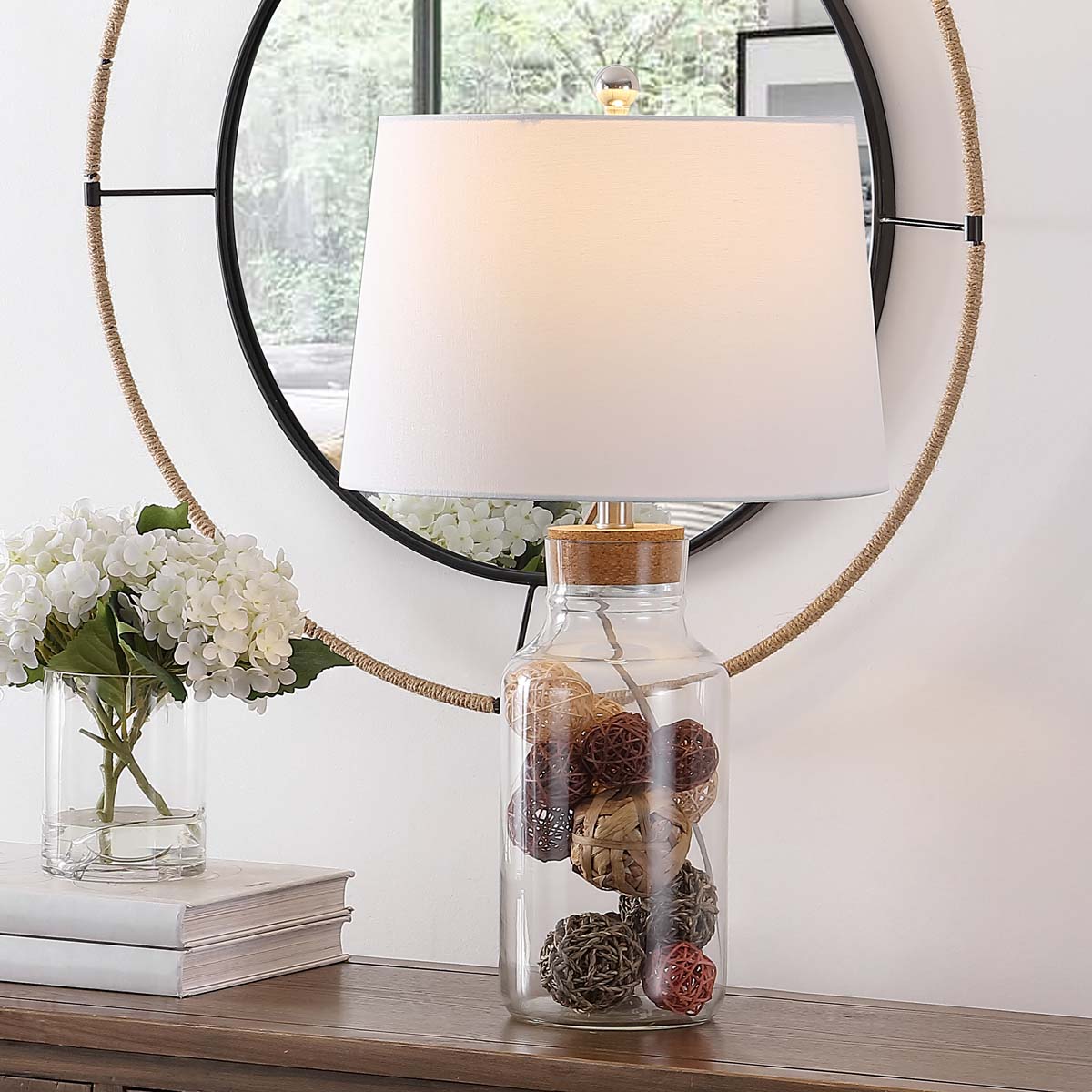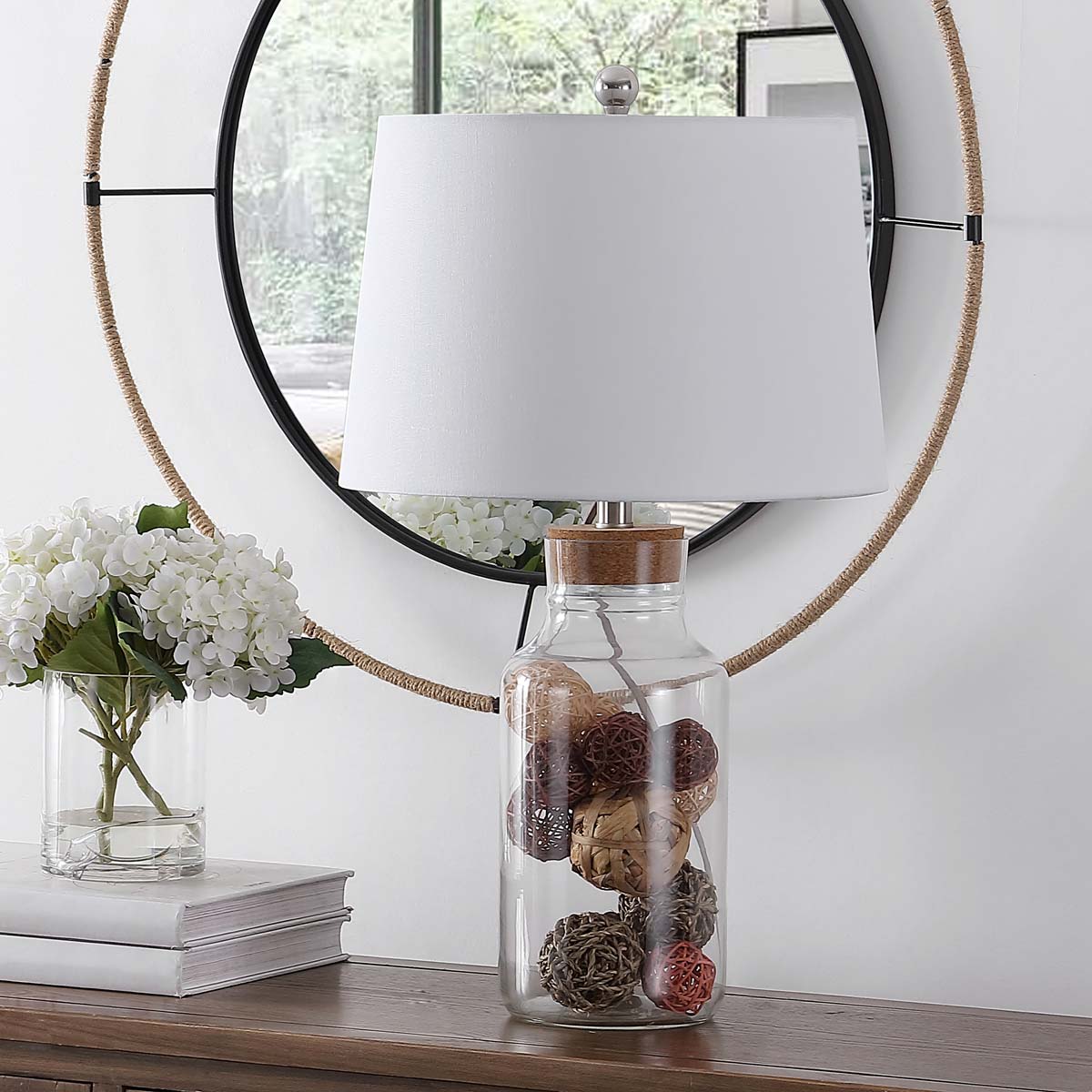 A Contemporary Update Of The Traditional Ship In A Bottle, This Hensen Table Lamp Is A Playful Take On Coastal-Chic Style. Hensen?? Clear Glass Body Houses Assorted Woven Rattan Balls That Emanate A Warm, Cozy Aura In Any D?cor. A Tapered Drum Shade Completes The Look.