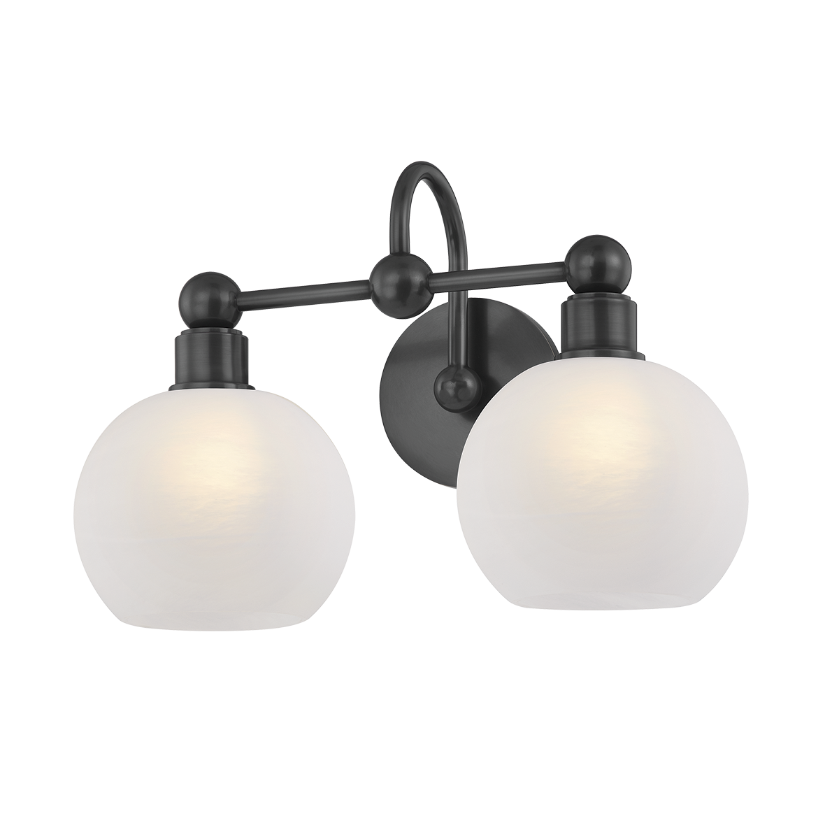 There’s a sense of visual ease in the continuity of circular forms in the Jerica bath light. The silhouette is understandable and usable, yet elevated by decorative sphere details, curved lines, and matte cloud glass globes. Choose from a gleaming Aged Brass finish, or opt for Old Bronze for a more modern take. Whether as a sconce or bath bar, Jerica illuminates your daily routines with serene style.