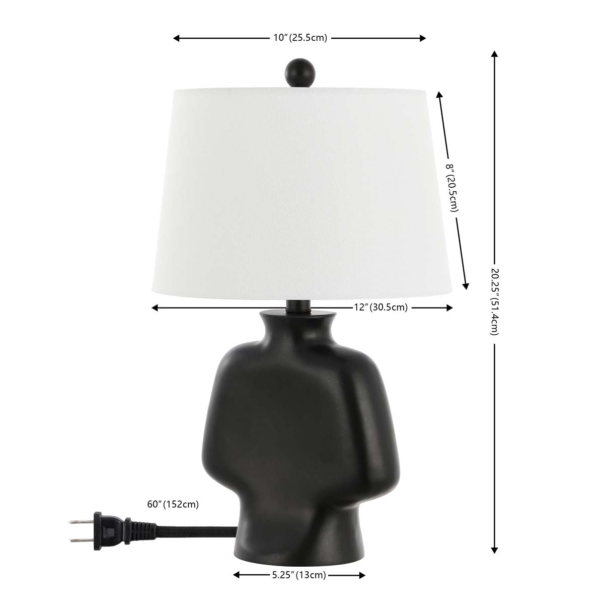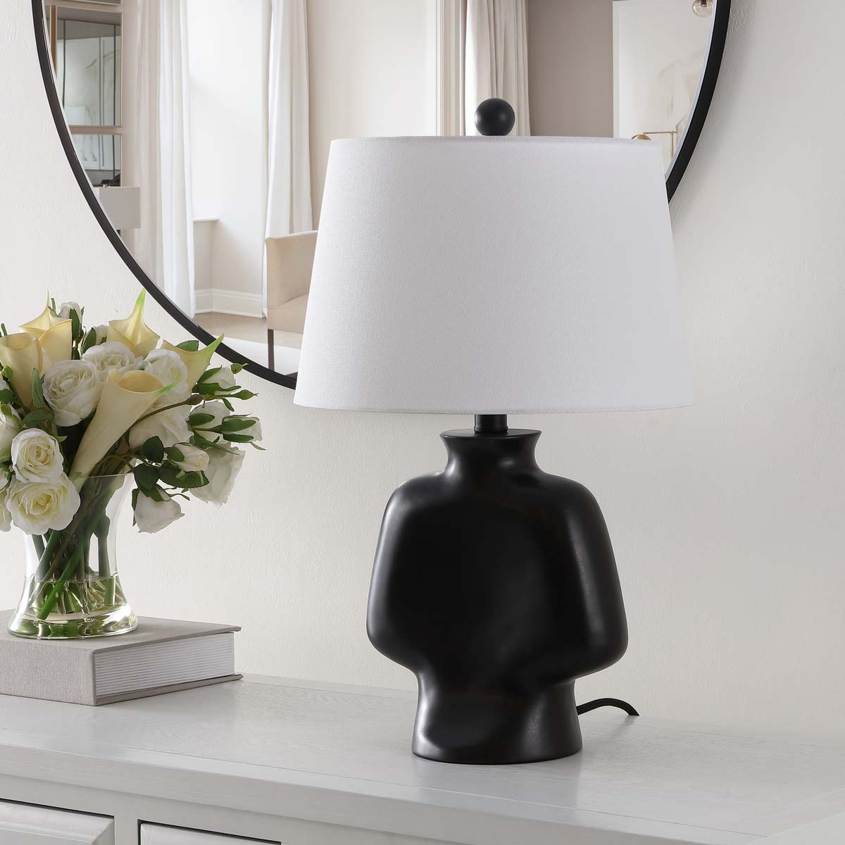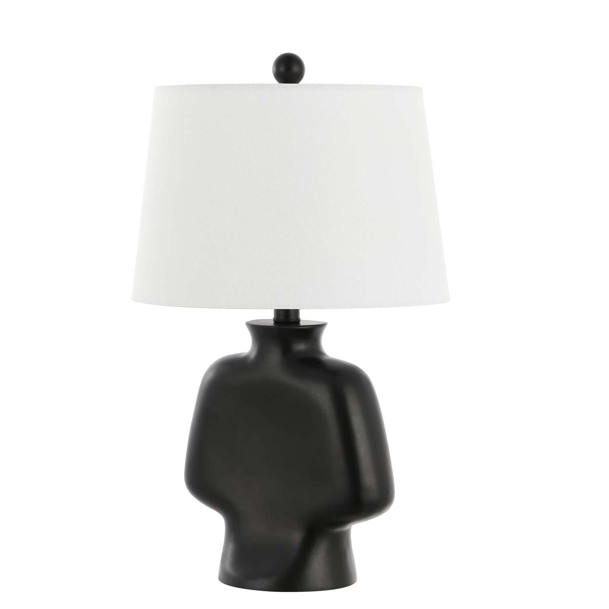 Bring An Elegant Touch Of Drama To Your Home With Our Alluring Johari Table Lamp. Defined By Its Bold And Swelled Contours, The Table Lamp Serves As A Sophisticated And Artful Focal Point. It Features A Contrasting Finish With A Black Sculptural Body And Sleek White Shade. Lending A High Visual Impact To Any Corner, Our Stylish Table Lamp Remains The Perfect Complement To Any Modern Or Contemporary Setting. It Beautifully Filters Light To Create The Perfect Illumination Beside A Sofa, Armchair, Or Bed.