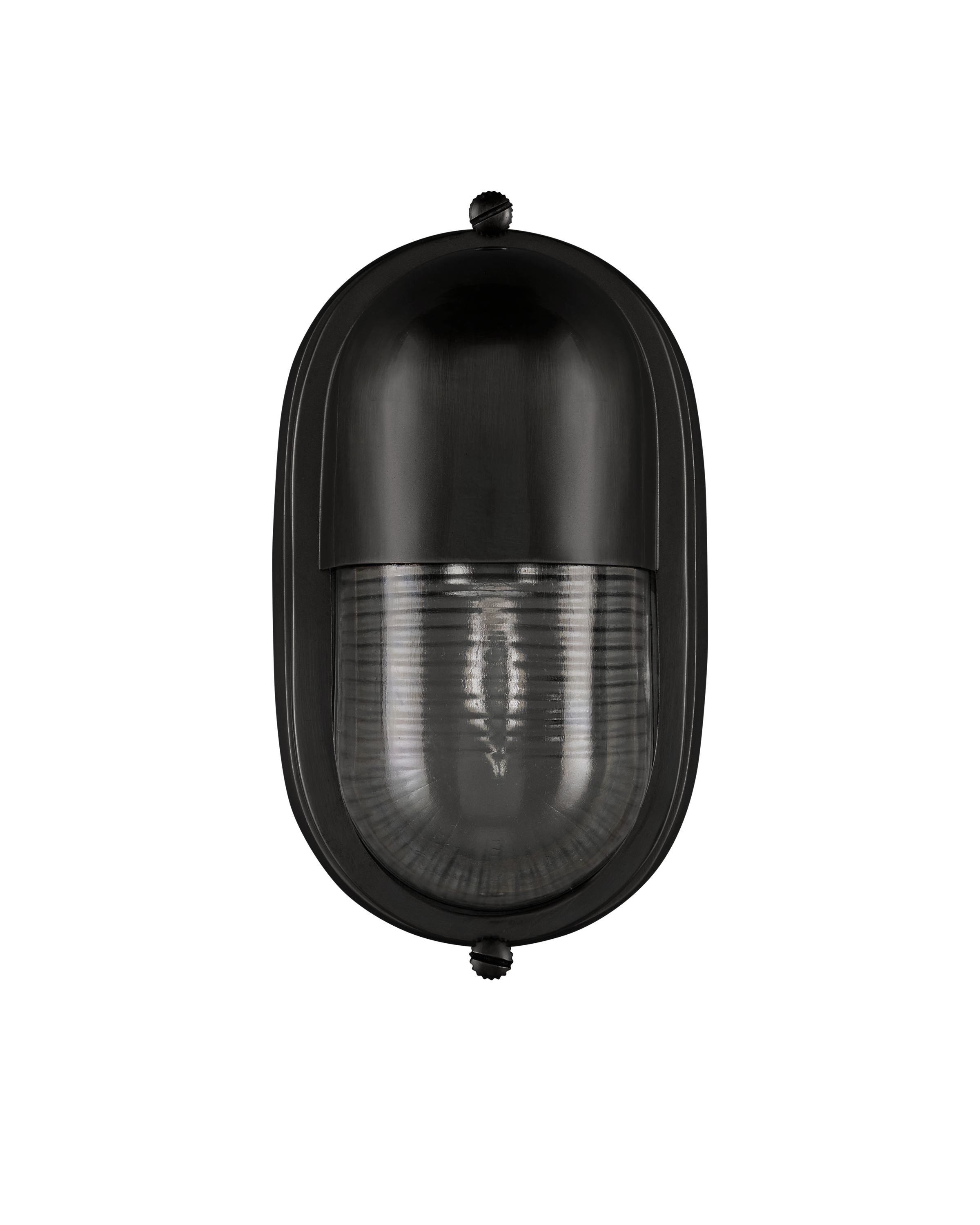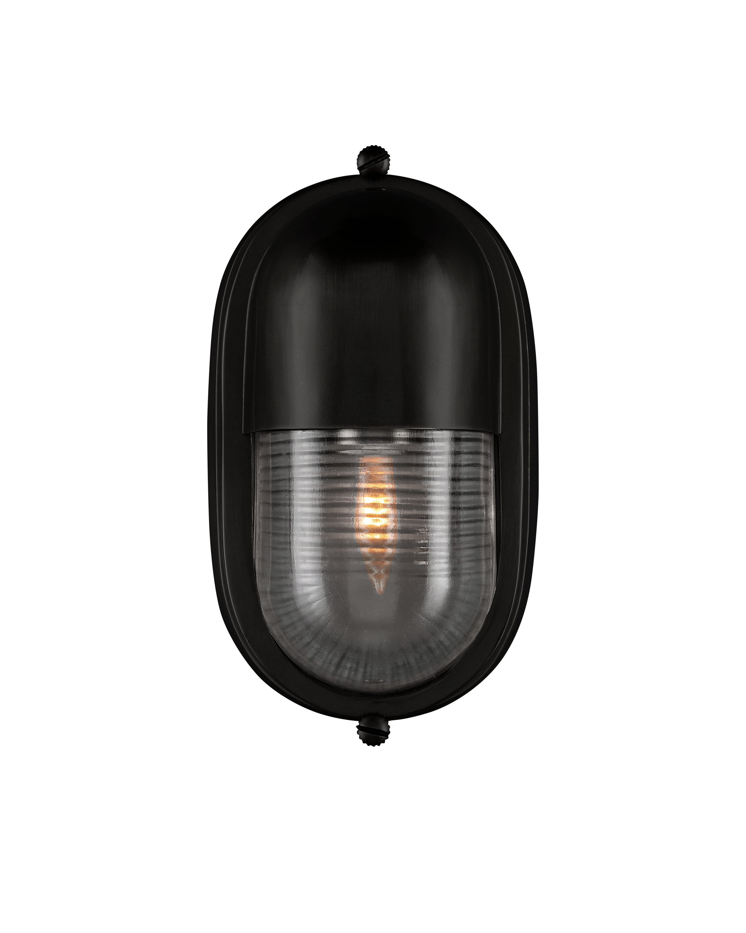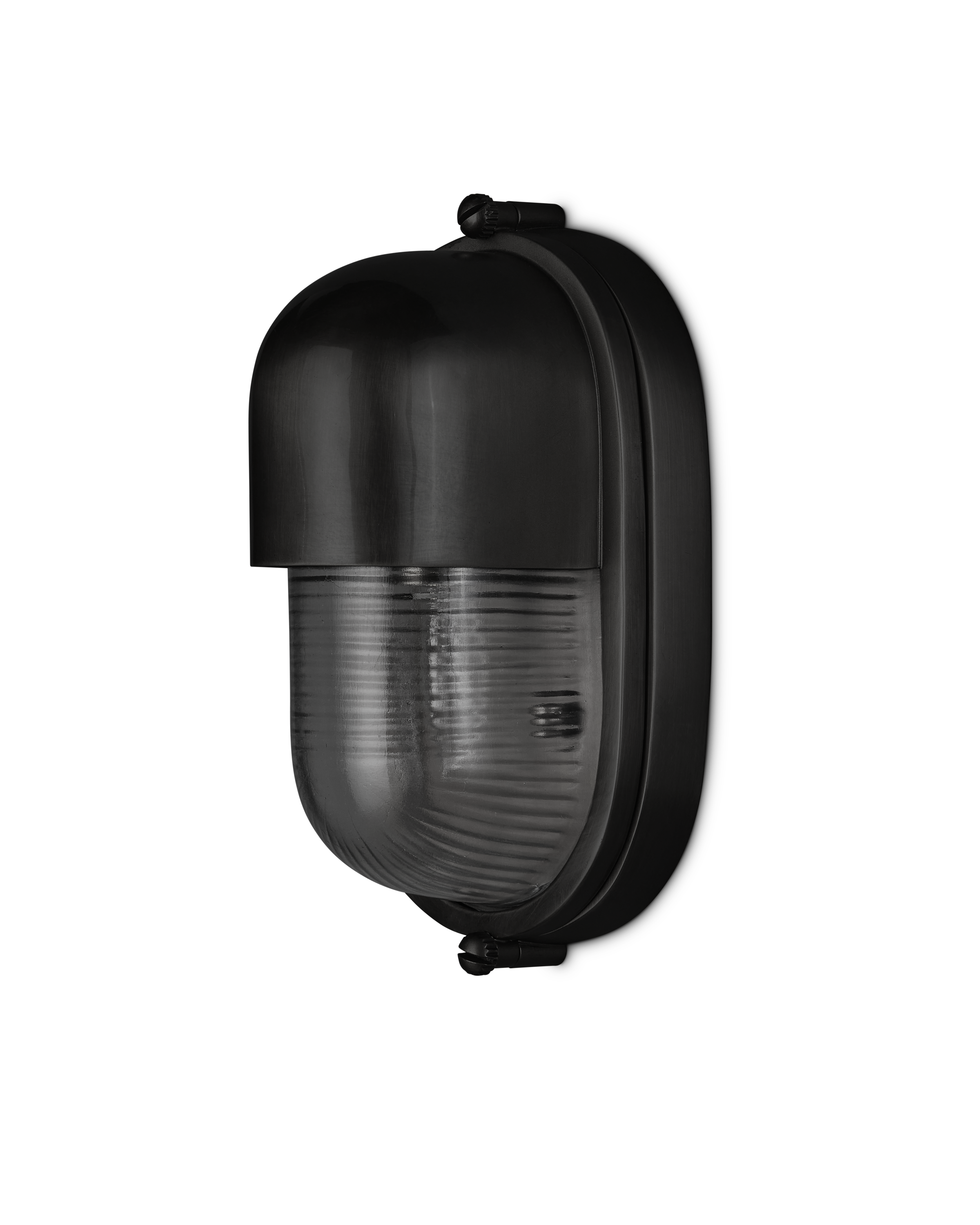 The Maritime Black Outdoor Wall Sconce has its sea legs, so to speak, given it has the quintessential design attributes that have sailed the oceans for centuries. The matte black brass body holds the ribbed glass shade in place has depth even when the lights are off. This black outdoor sconce is a perfect choice for coastal environments given its stylistic notes harken to luxury yachts and schooners.
