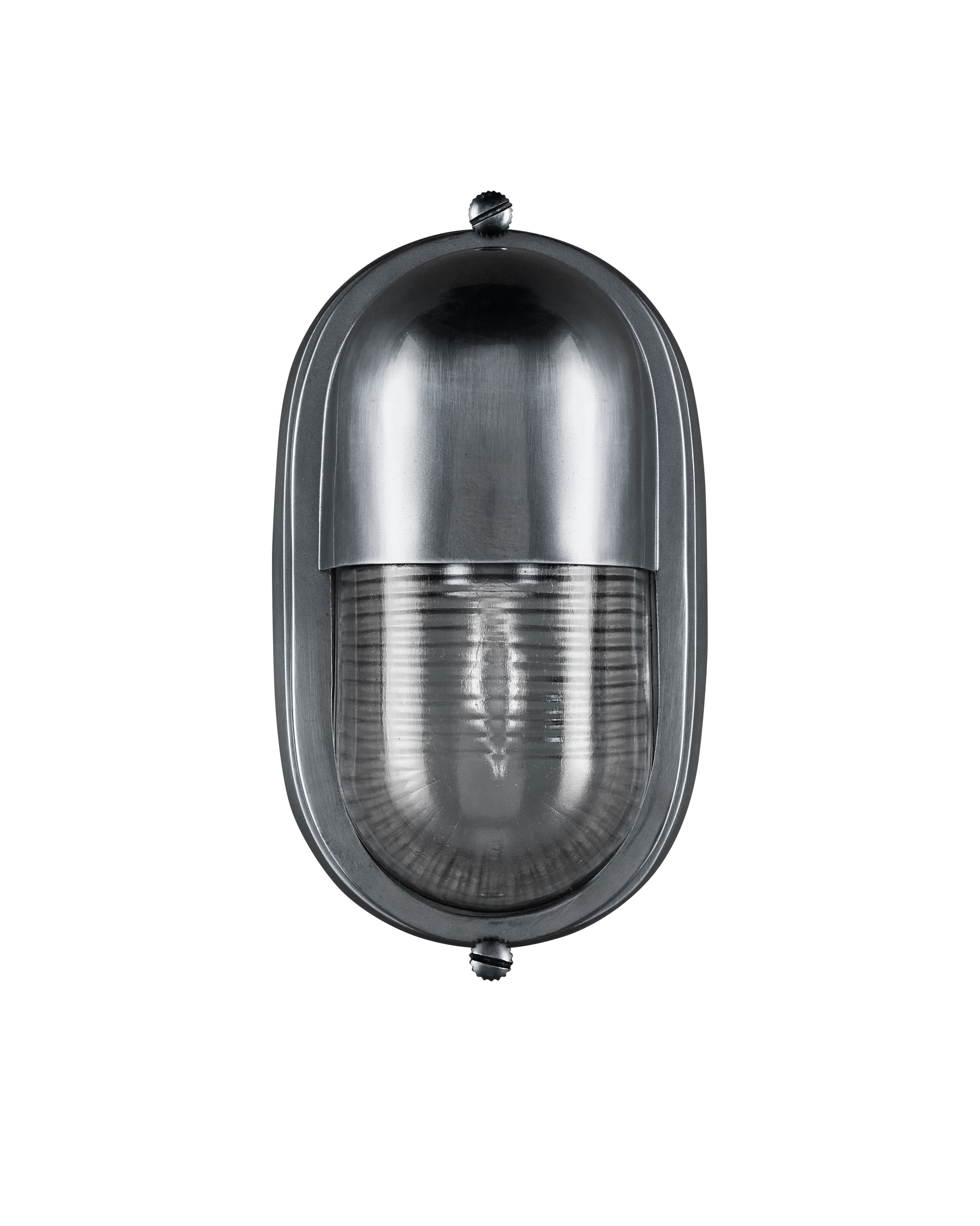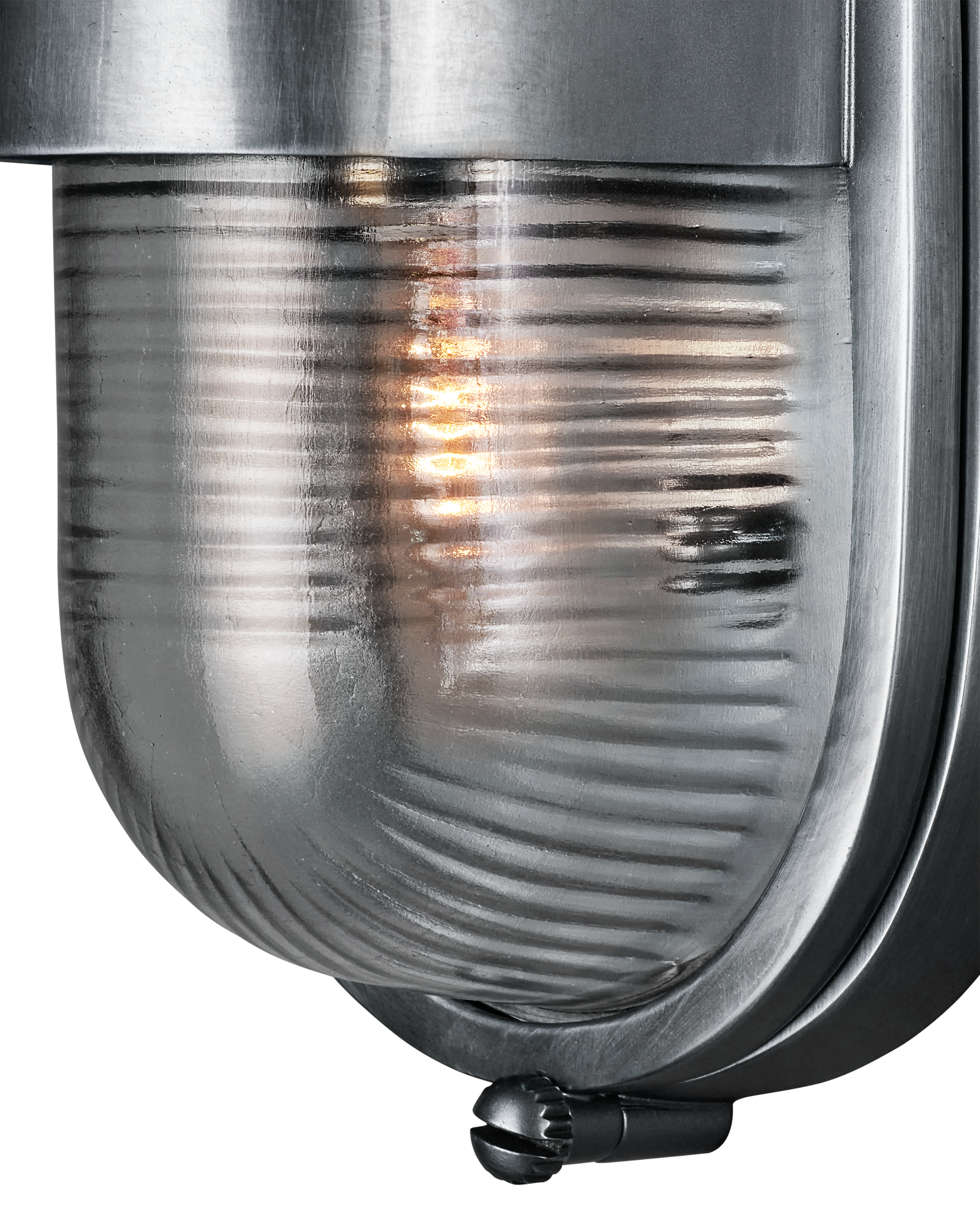The Maritime Silver Outdoor Wall Sconce has its sea legs, so to speak, given it has the quintessential design attributes that have sailed the oceans for centuries. The antique silver-finished brass body that holds the ribbed glass shade in place gleams even when the lights are off. This silver outdoor sconce is a perfect choice for coastal environments given its stylistic notes harken to luxury yachts and schooners.