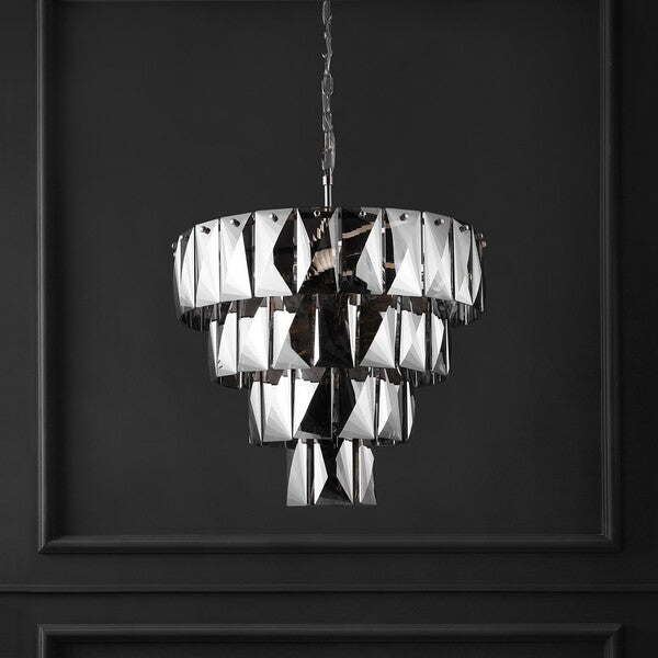 Illuminate your home with the shimmering glamour and elegance of our Jaylee four-tier chandelier. Our captivating and sophisticated chandelier invites classic elegance and luxury to your home. It features layers of faceted crystal to serve as a stunning focal point. Each faceted crystal reflects and refracts light to create a dramatic ambiance. Enchantingly glamorous, our chandelier adds radiant sparkle and classic style to your living space, foyer, bedroom, or dining area.
