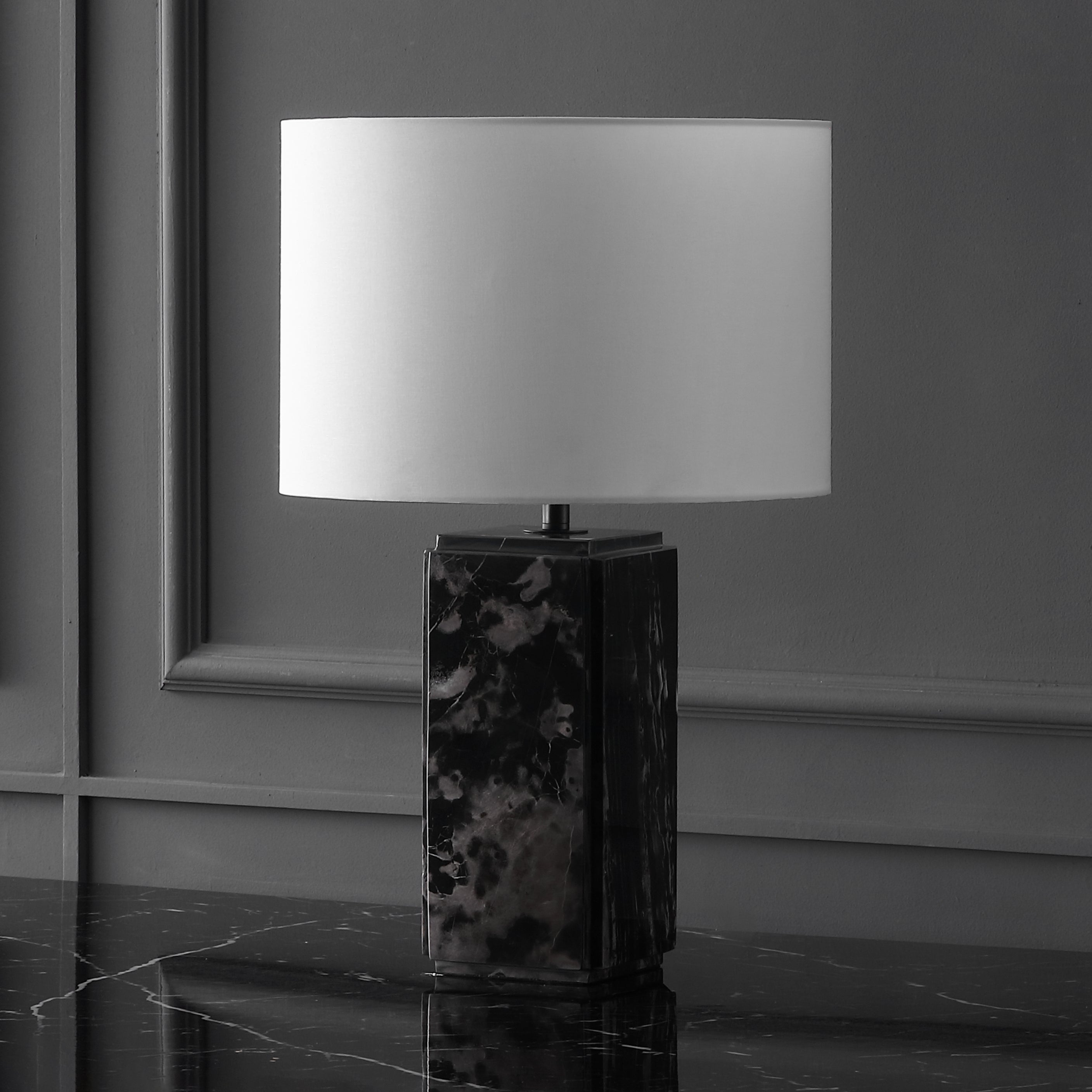 Illuminate your space with a touch of class using our Zahra Marble Tall Table Lamp. Hand-sculpted from exquisite marble and built with a solid iron base, this dramatic lamp is a sophisticated statement piece draped in a streamlined palette of black and white. Detailed with a high-quality linen shade, it exudes a timeless elegance that complements any home decor. Armed with a dimmer switch, it allows you to control the light's intensity to suit your mood or time of the day. Bring in a bolder, more urban feel into your home with Zahra's fine mixture of classic grace and industrial charm. Upgrade your lighting experience with our exceptional Zahra Marble Tall Table Lamp. Your spaces have never looked so refined.