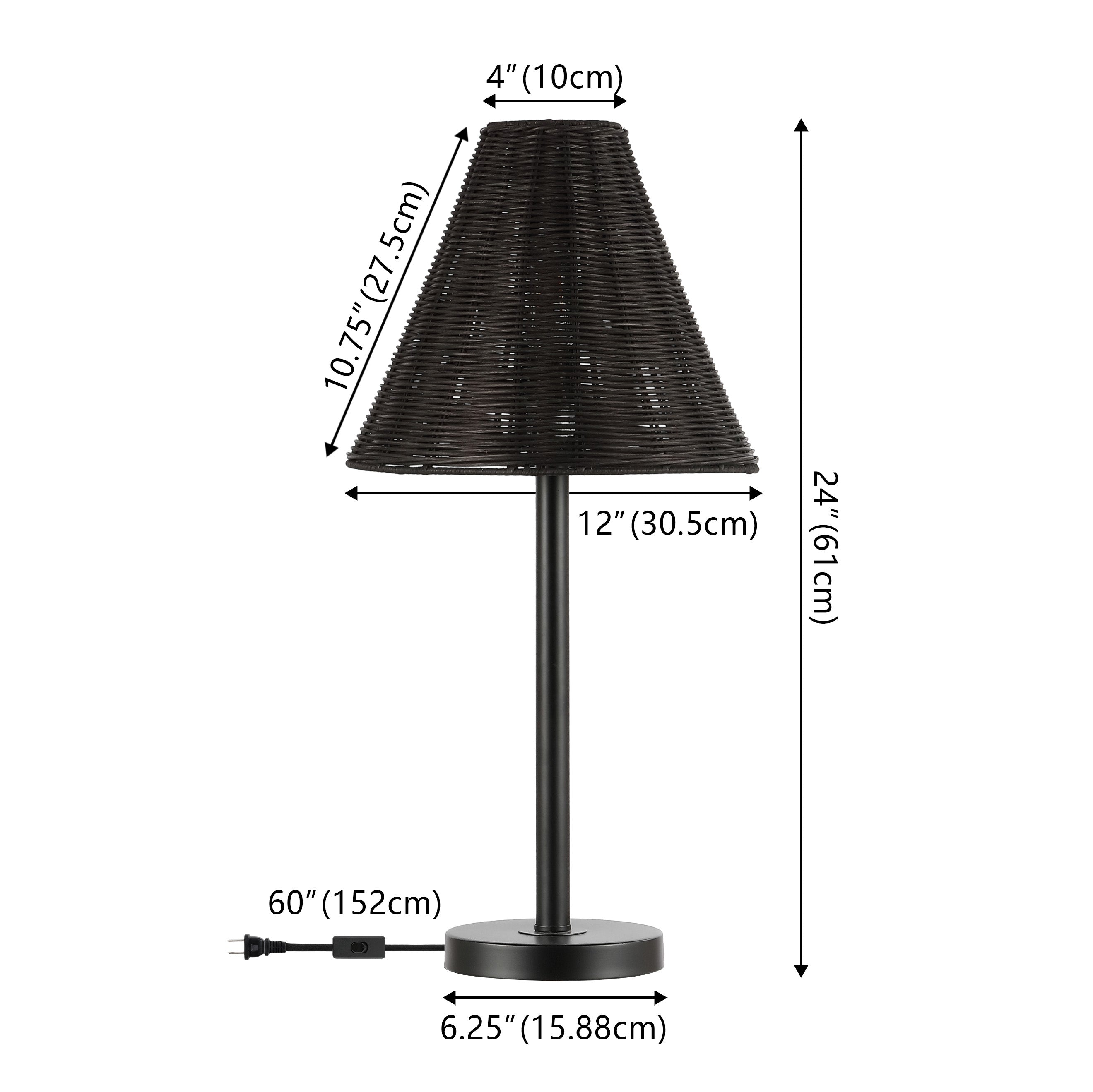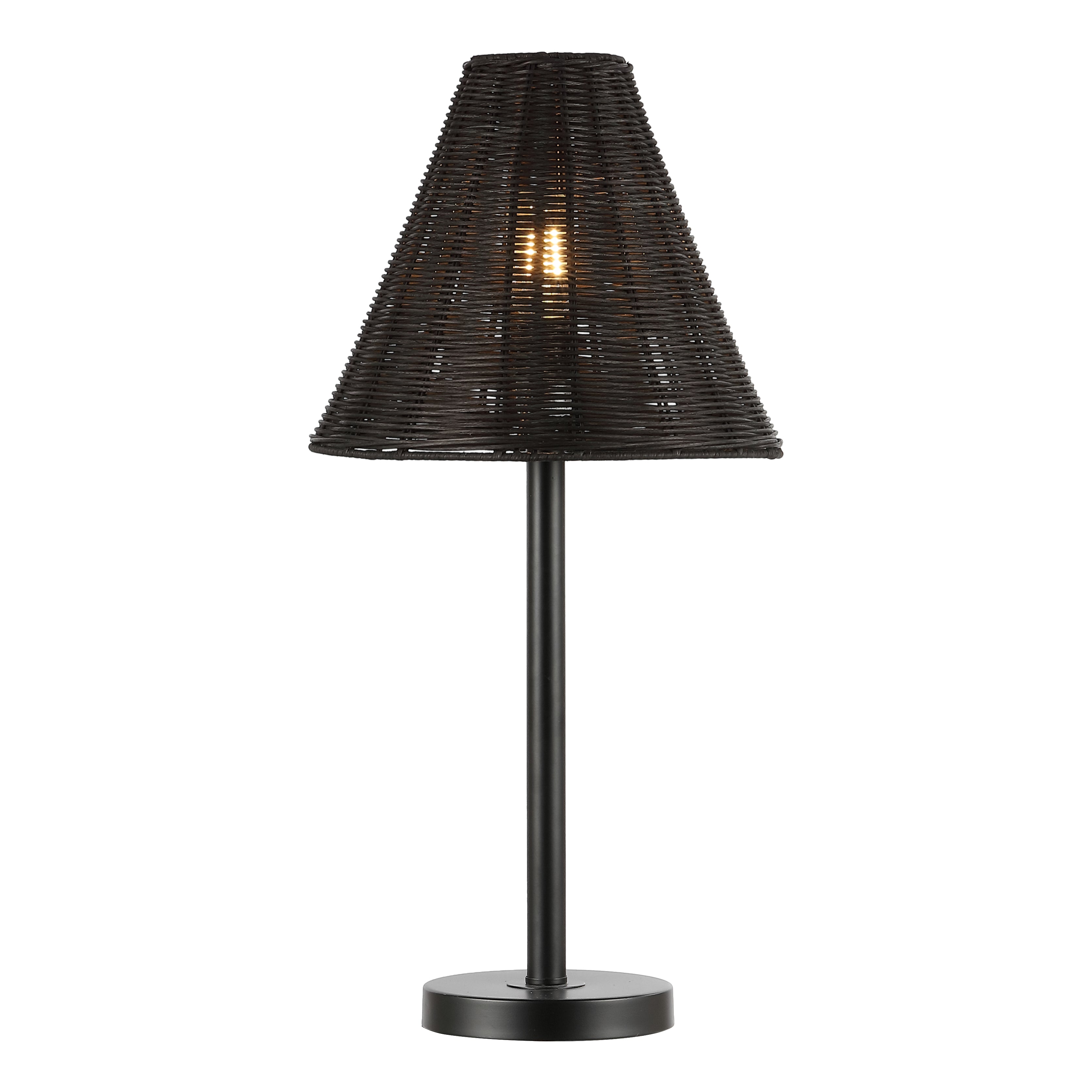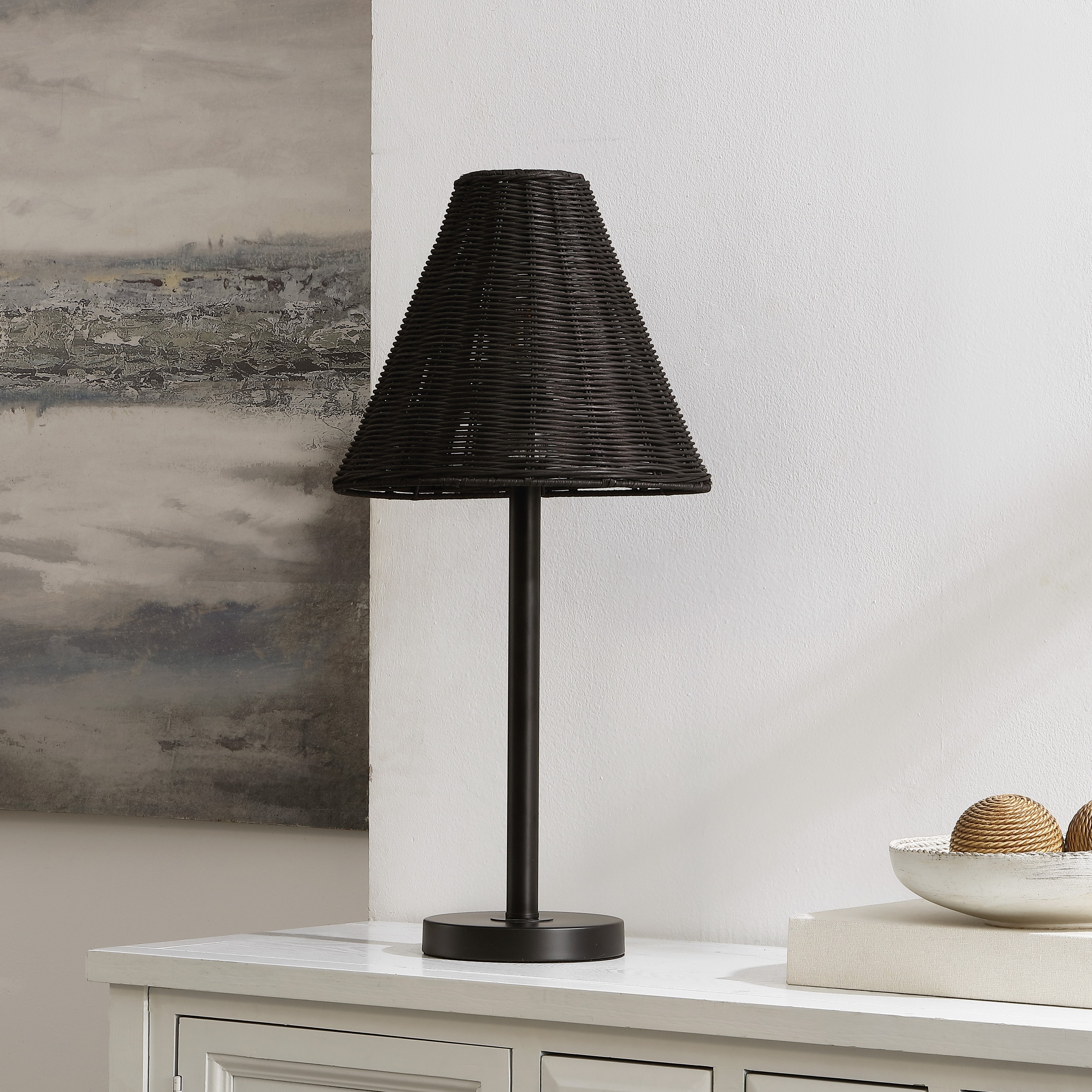 Illuminate your space with the sleek and sophisticated Ricki Table Lamp. Crafted with a durable metal body in a timeless black finish, this lamp is designed to complement any decor. The unique rattan shade adds a touch of natural elegance while softly diffusing the light, creating a warm and inviting atmosphere in your room.