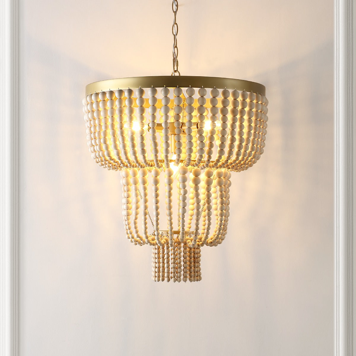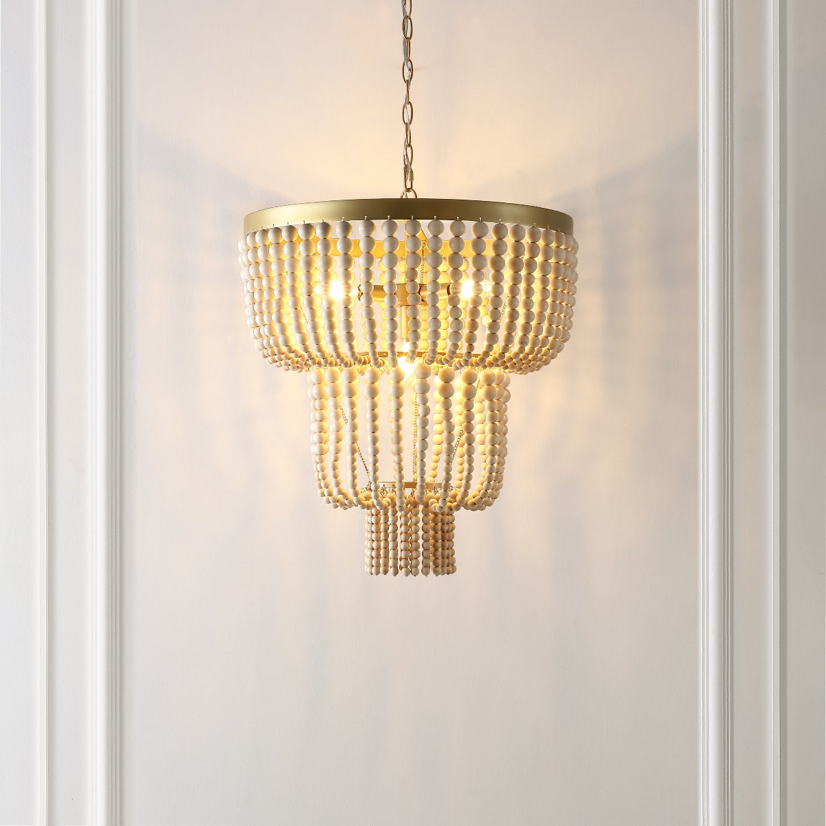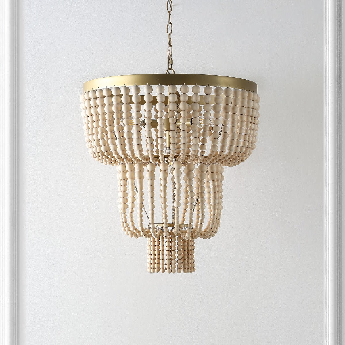 Enliven your home with the elevated and graceful look of the Aleynne extendable chandelier. The classic style meets rustic charm with our contemporary chandelier. Wooden beads beautifully cascade over the tiered chandelier creating an elegant contrast with its gold frame. Vouching for a powerful and eye-catching design, our chandelier can serve as the breezy and charming centerpiece for your entryway, living area, or dining room.
