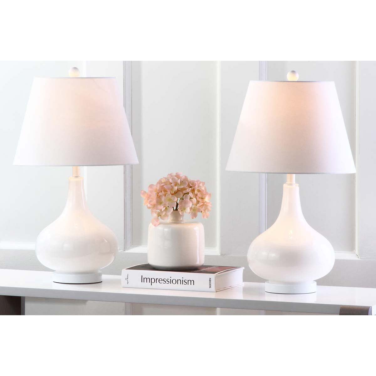 Safavieh Amy 24 Inch H Gourd Glass Lamp-White (Set of 2)
