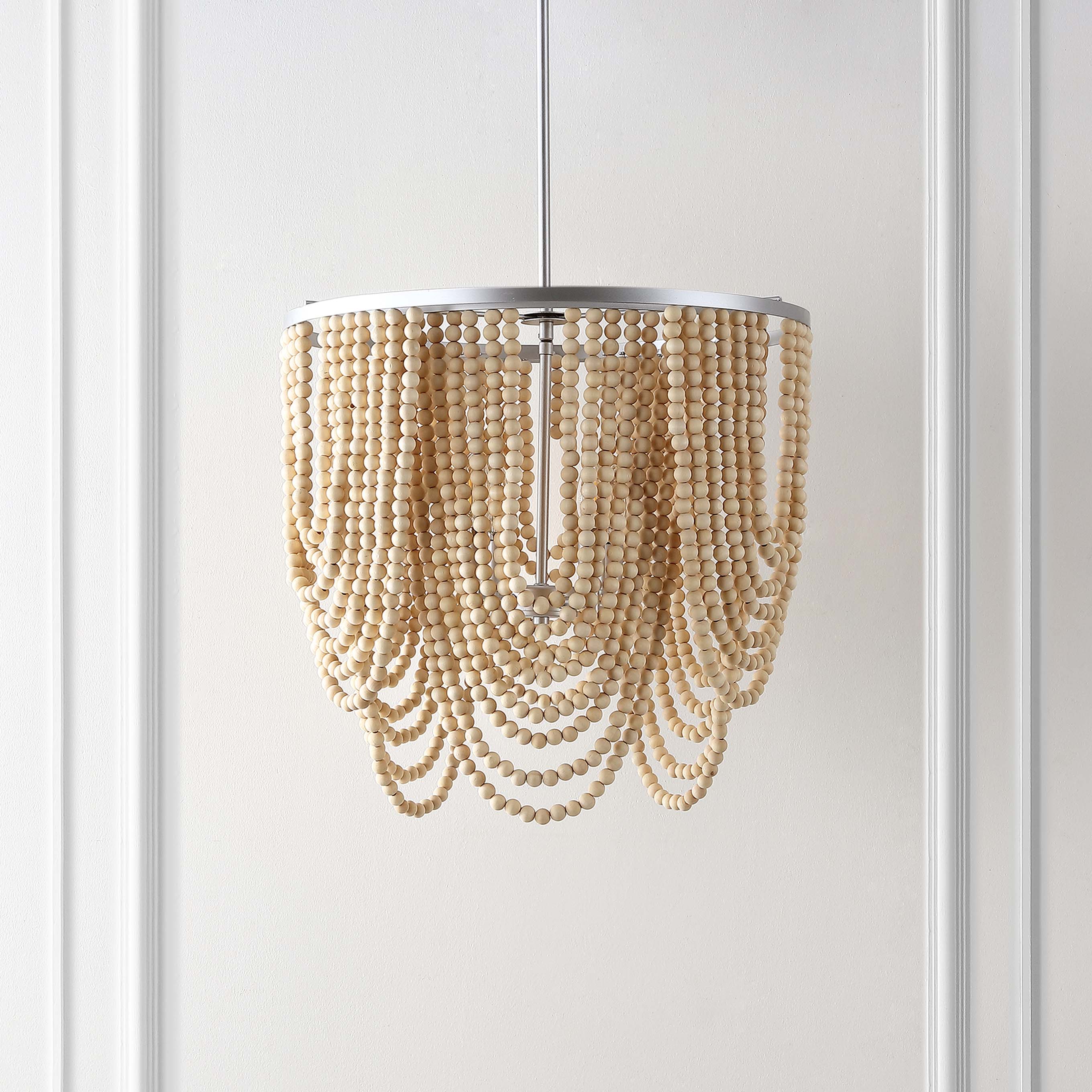 Uplift your home with the playful elegance of our Bressi extendable chandelier. Elevated with an eclectic mix of textures, the chandelier instantly captures the eye. It combines the rustic charm of wooden beads with an elegant silver frame. The wooden beads beautifully drape and overlap to attain a graceful yet casual look. The charming simplicity and elegance of our chandelier make it a perfect accent piece over your bed or seating area.