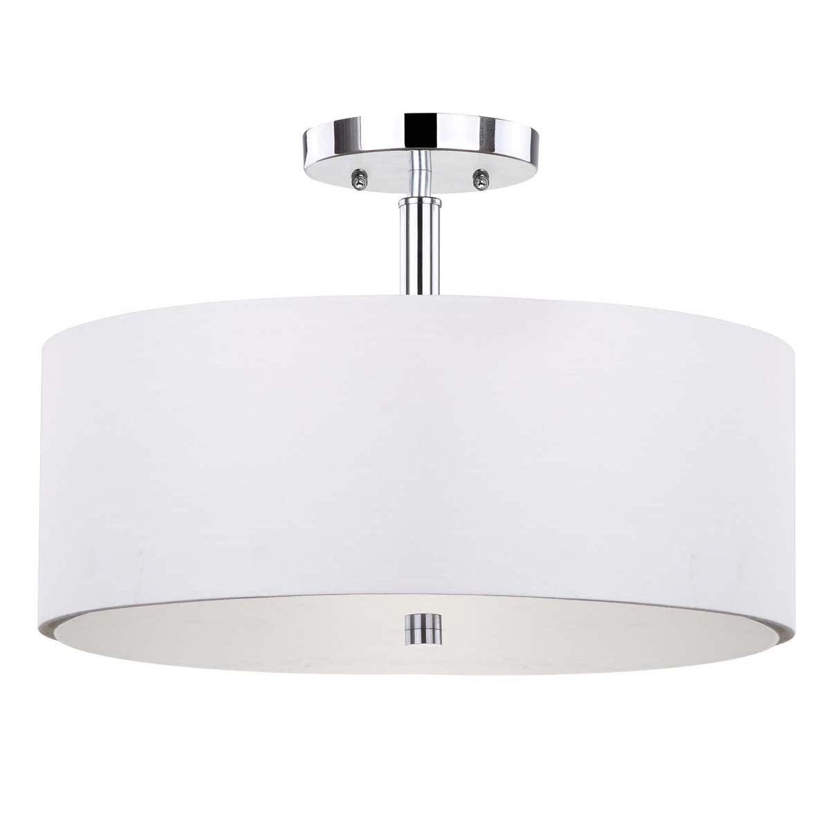 A handsome and understated fixture for transitional or contemporary rooms, the Clara Ceiling Drum light is dramatic in its simplicity and elegance of scale.? Crafted with white cotton drum shade and gleaming chrome accents, Clara casts a stylish glow.