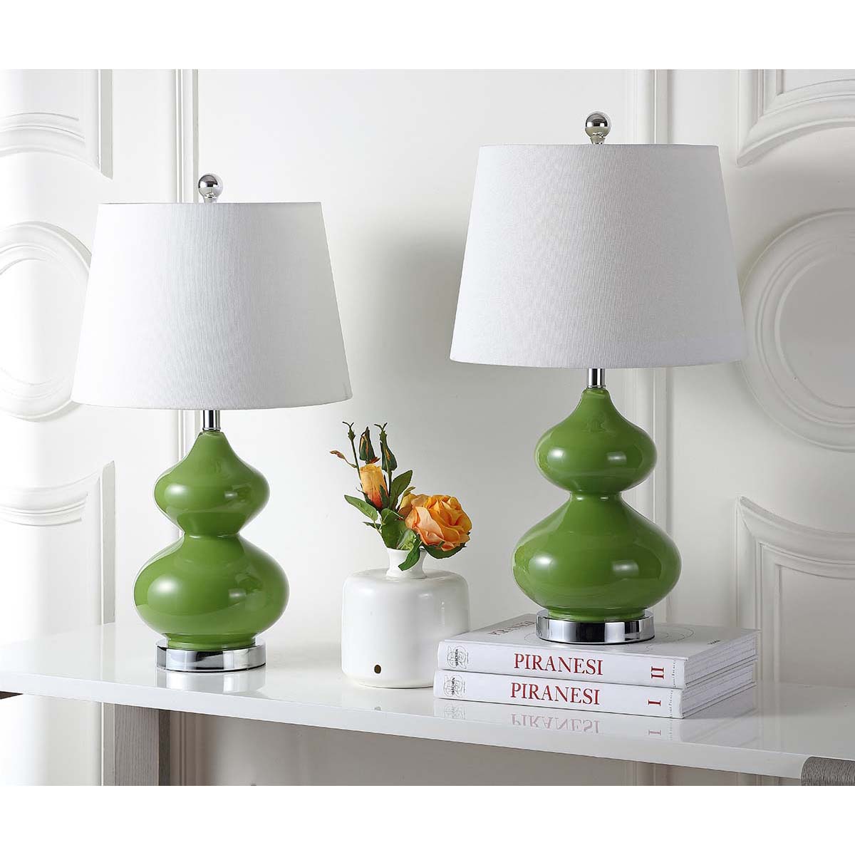 Safavieh Eva 24 Inch H Double Gourd Glass Lamp - Green (Set of 2)