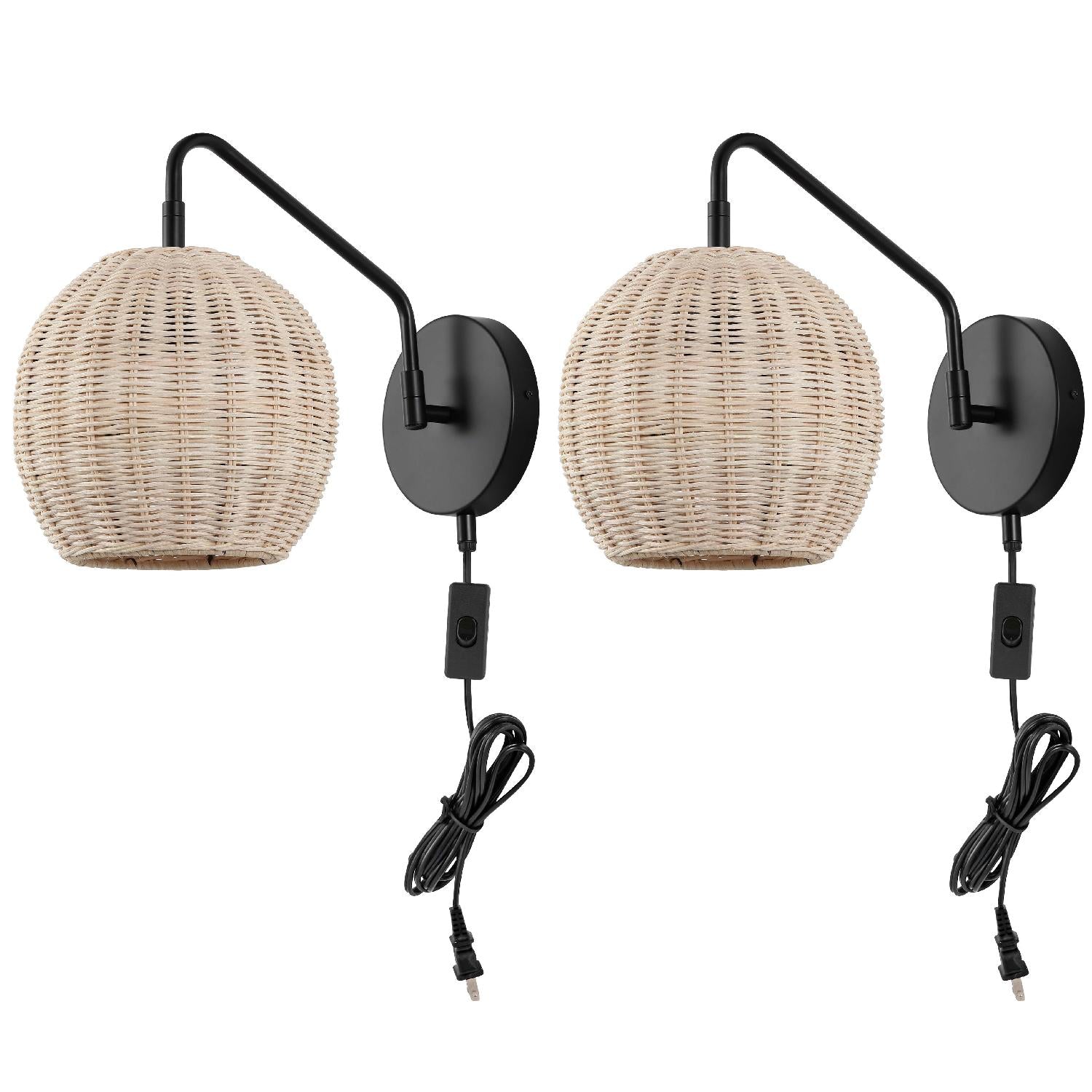 Give a sleek and stylish update to your home with the Grigory wall sconces. Its features woven rattan shade to bring organic charm and beauty to your home. With slender black metallic arms, the wall scone impresses with its sleek and refined design. Its accommodating arm can pivot light at just the right angle, making your daily task a breeze. Our stylish wall scone is available in a set of two with a built-in USB port to keep your devices charged.