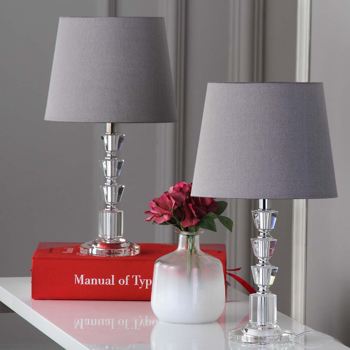 Safavieh Harlow 16 Inch H Tiered Crystal Dark Grey Lamp - Clear / Grey (Set of 2)