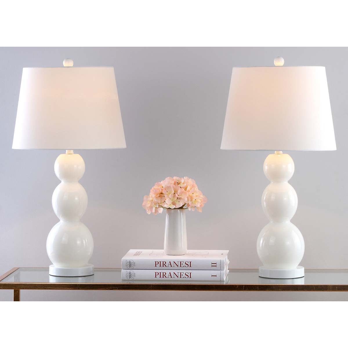 Safavieh Jayne 26.5 Inch H Three Sphere Glass Lamp-White (Set of 2)