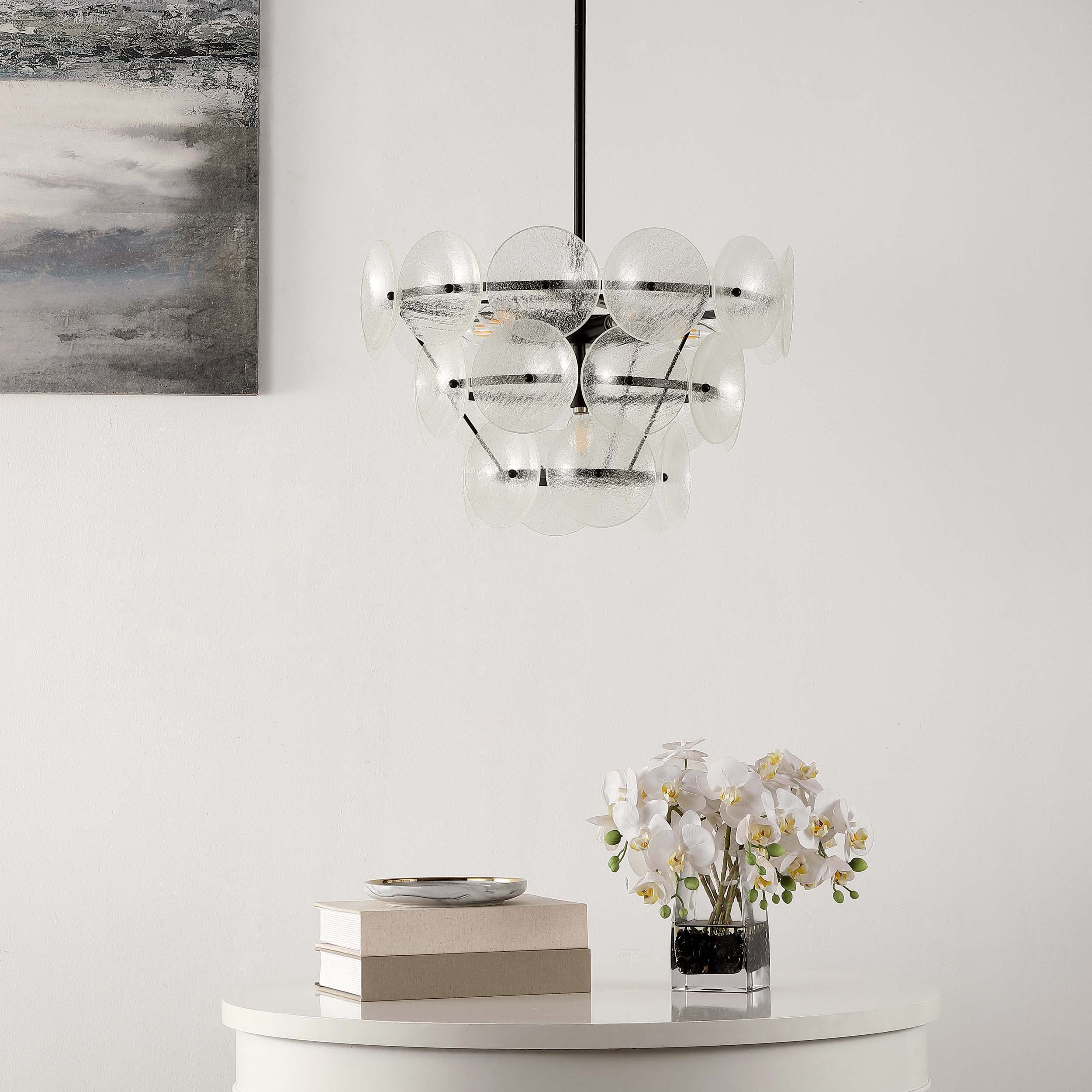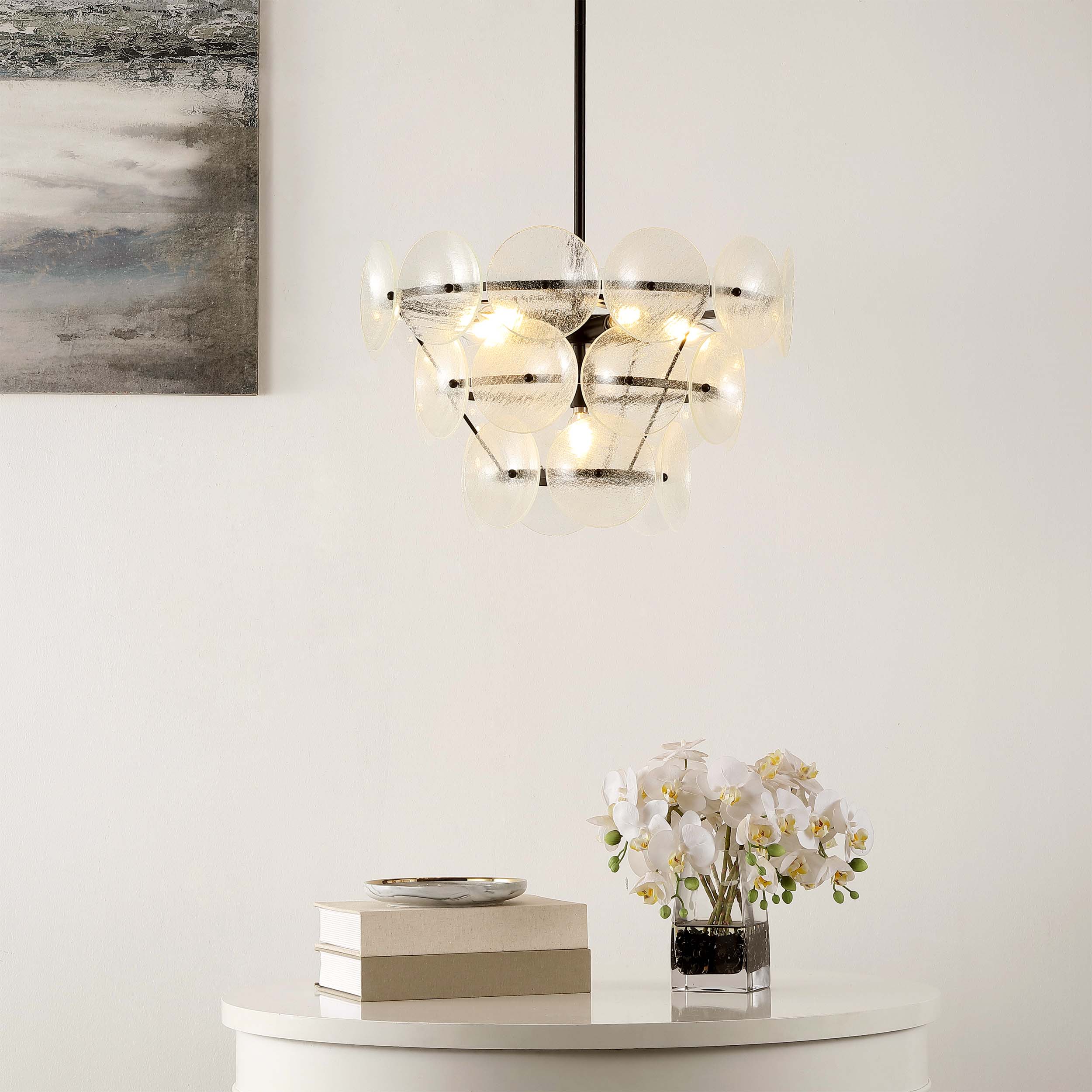 Revitalize any room with the spellbinding chic of this Landreth Chandelier. Flaunting three tiers of clear seeded glass disks that sparkle in the light, Landreth is a favorite among glamorously artistic designers.