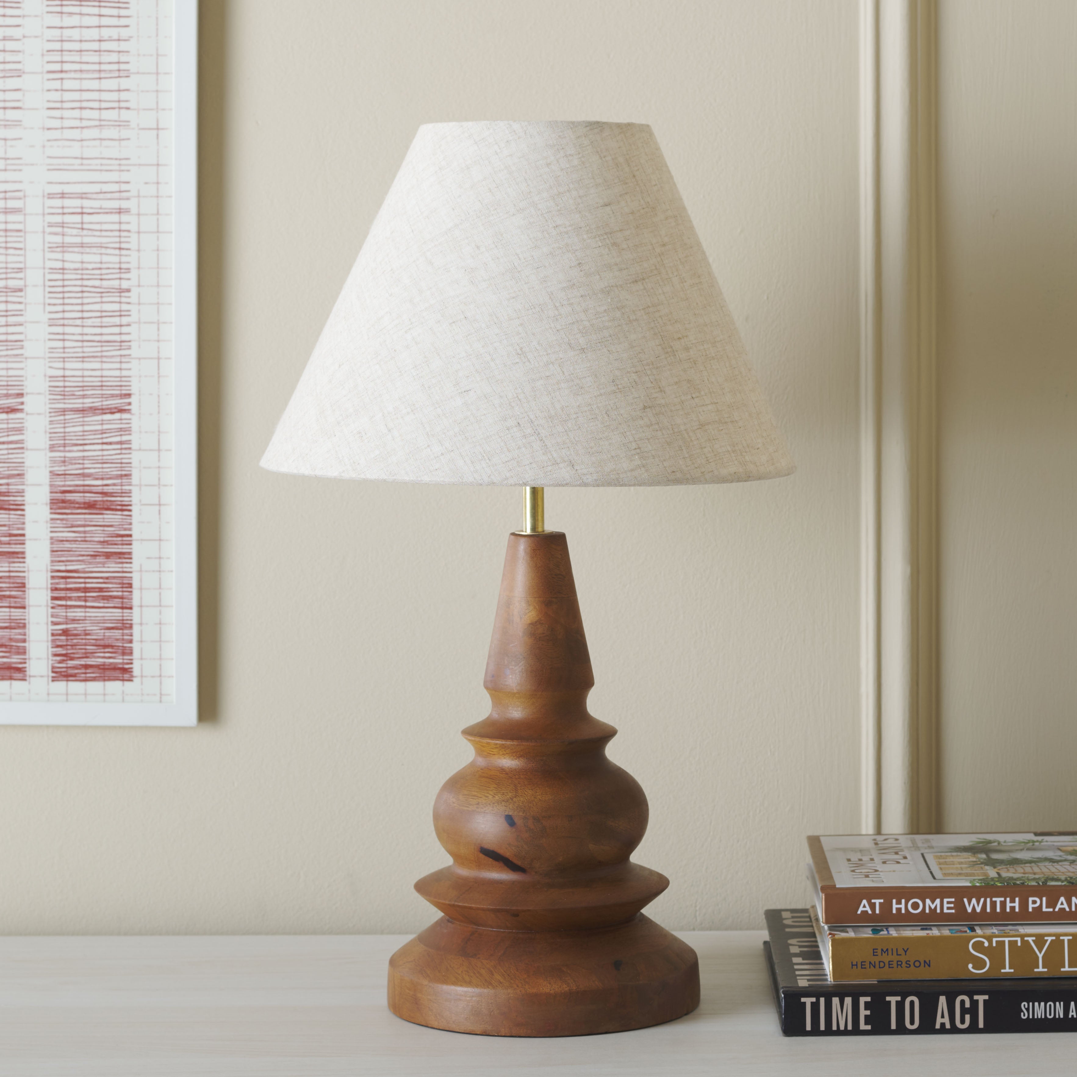 Crowned with a fabric shade in a complementary natural hue, this lamp casts a soft, inviting glow, perfect for creating a cozy atmosphere in any setting. Its versatile style pairs well with both contemporary and traditional decor, making it an ideal choice for living rooms, bedrooms, or reading nooks.