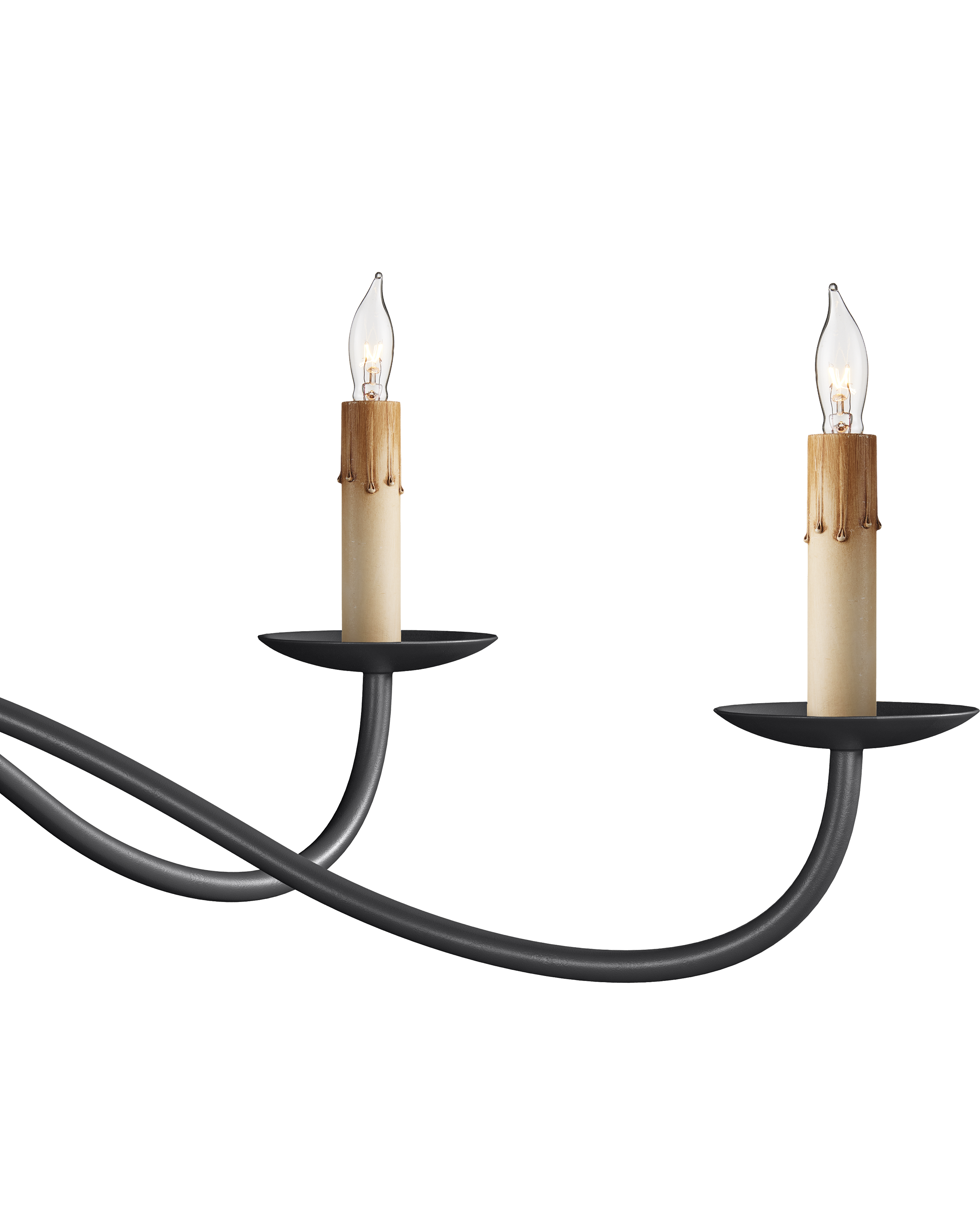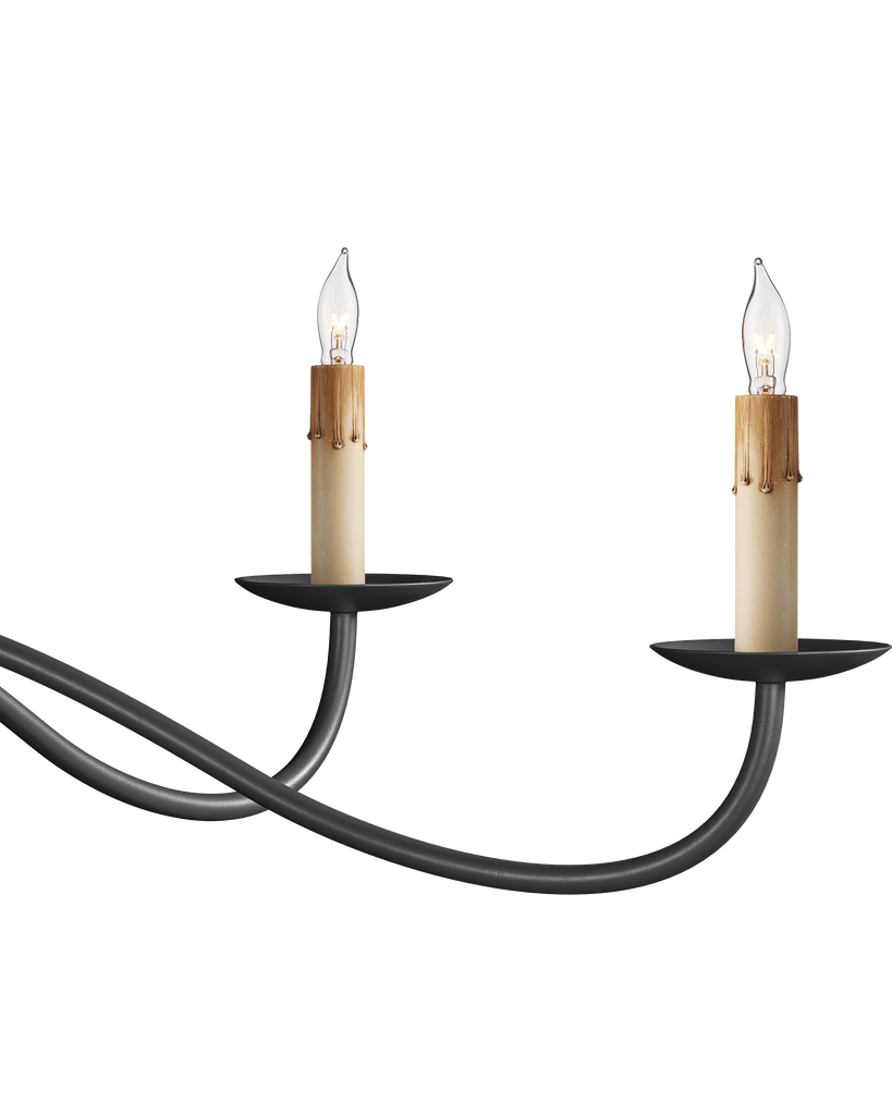 The Saxon Small Black Chandelier is one of our most graceful chandeliers with arms that fluidly stretch outward. Its shape and the Zanzibar black finish are nods to a bygone era, but its arcing slender lines make its profile modern. Adjustable from 27.5" to 96" with use of included chain/rod kit/cable. If your space calls for a longer drop, additional chain/rods/cable is available for purchase.