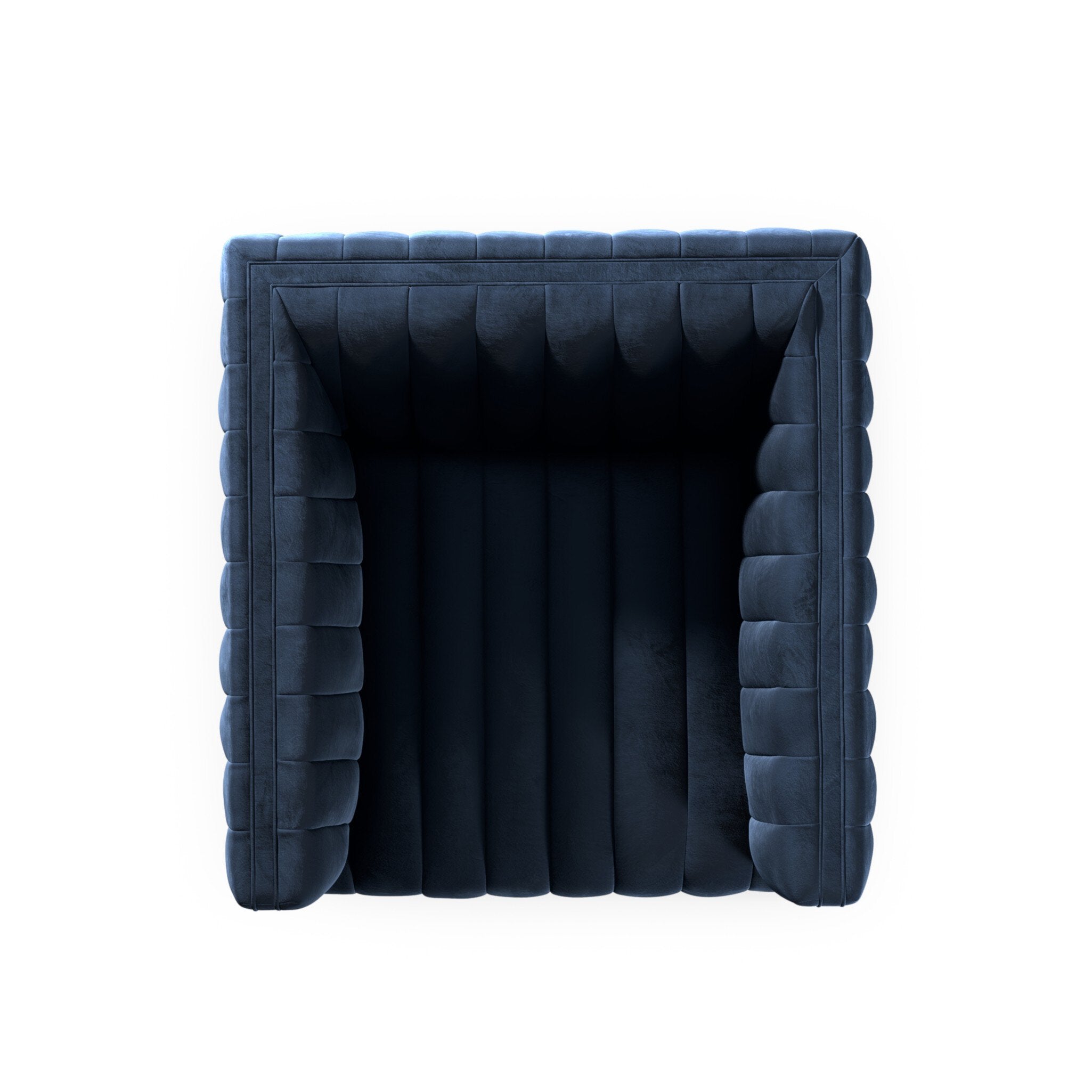 A modern take on the classic library chair, luxurious, Italian-inspired seating features dramatic channeling for trend-forward texture and a sumptuous sit. Upholstered in a velvety poly-blend fabric. A 360-degree swivel delivers from every angle.
