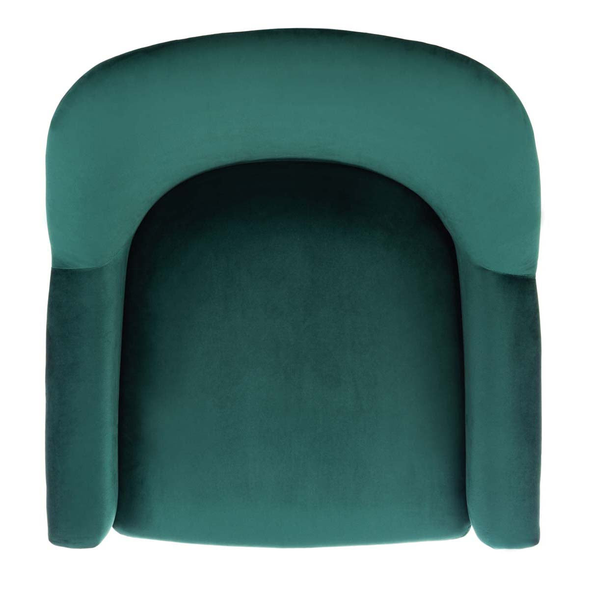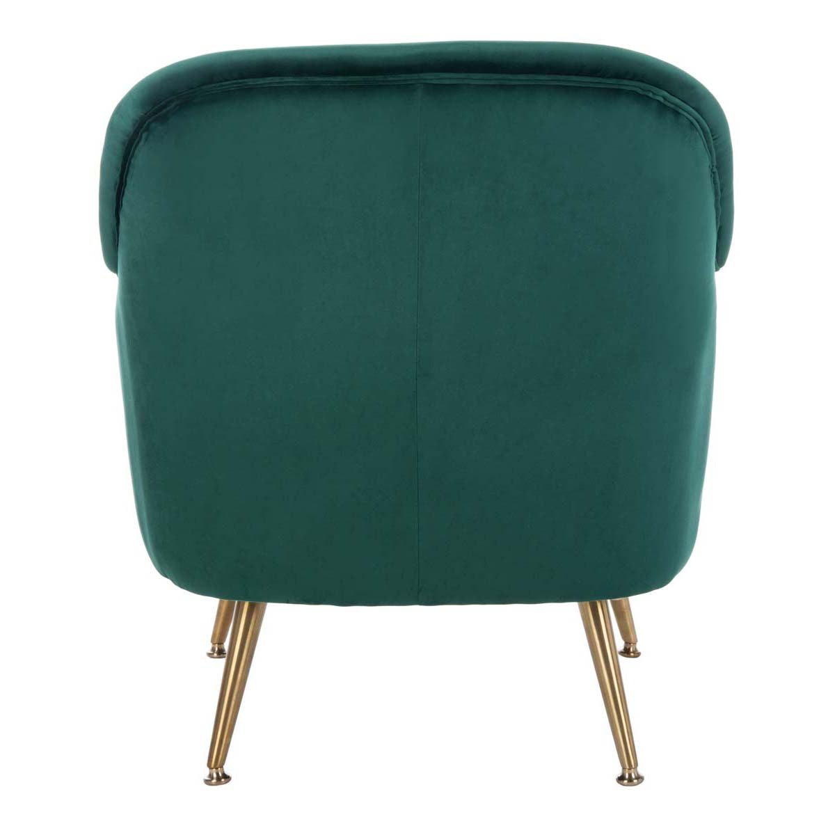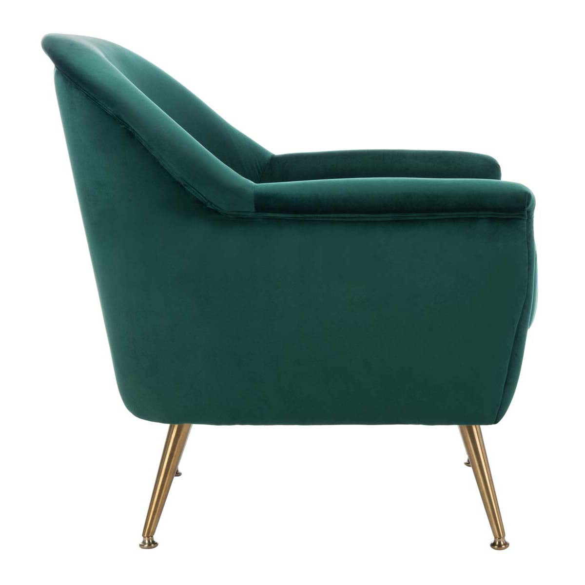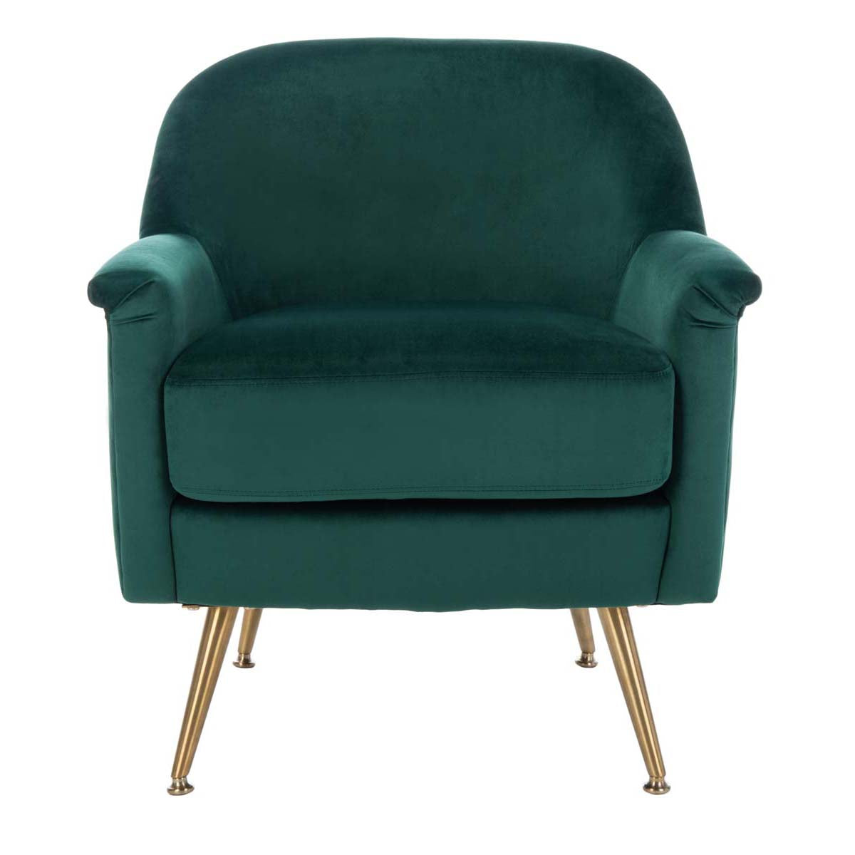Update any living room with the fresh retro flair of this Brienne Mid Century Arm Chair. Brienne's plush emerald velvet is paired with vintage style brass legs to create a luxuriously glam retreat for relaxing with an after work cocktail.