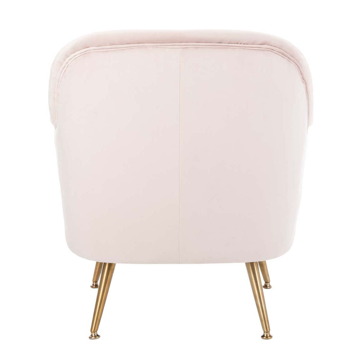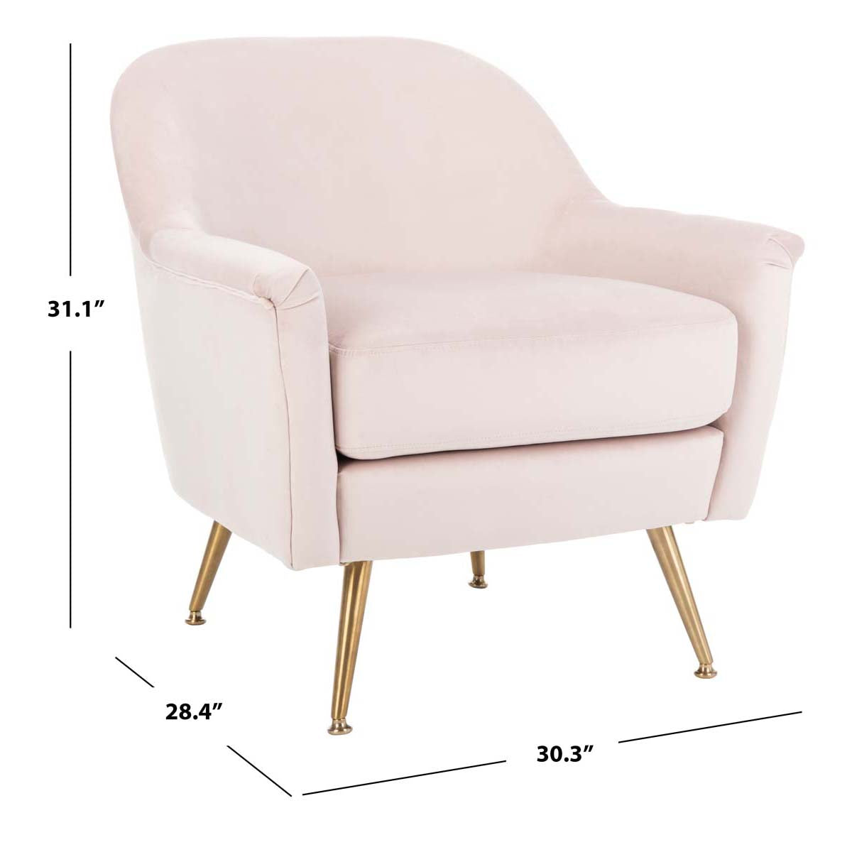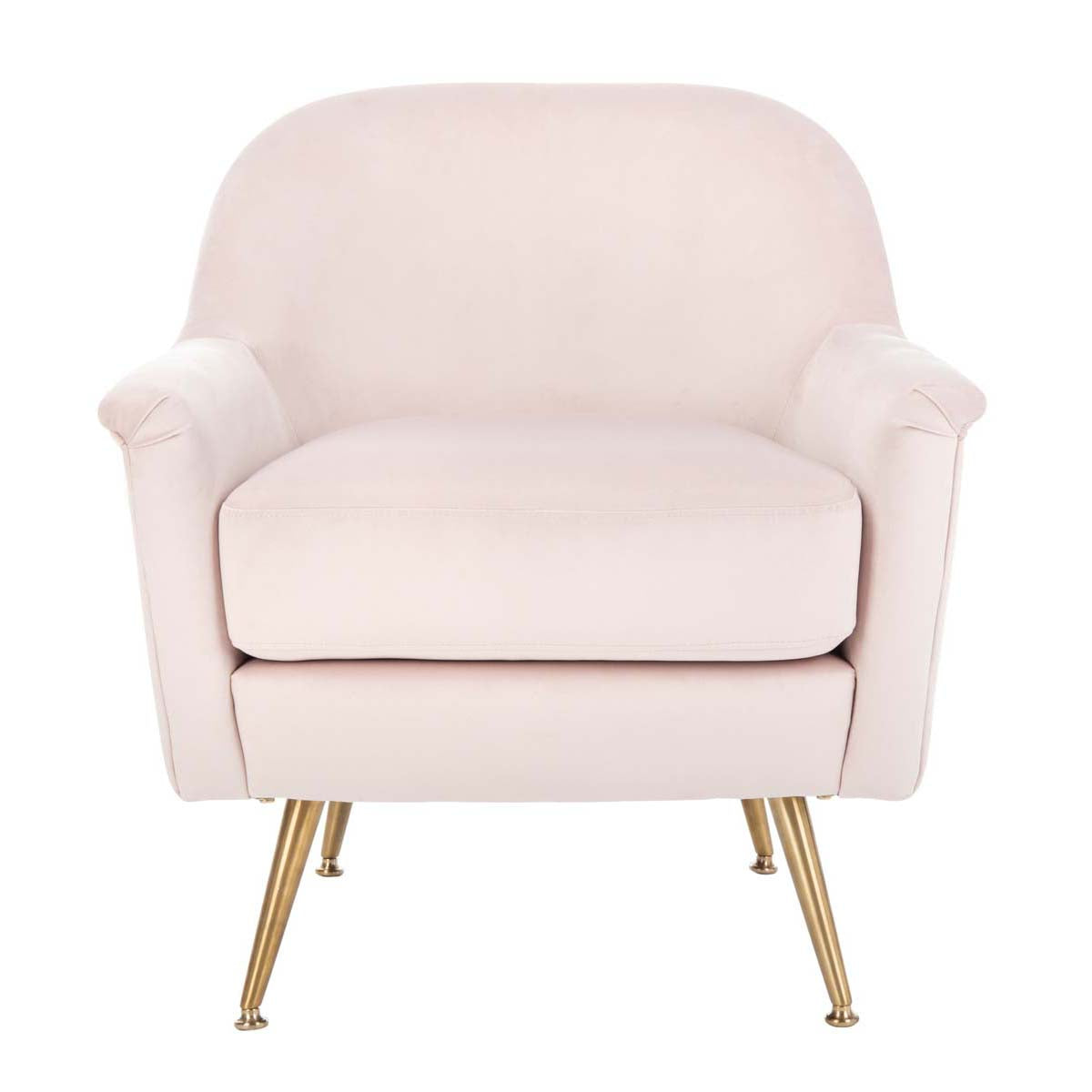 Update any living room with the fresh retro flair of this Brienne Mid Century Arm Chair. Brienne's plush blush pink velvet is paired with vintage style brass legs to create a luxuriously glam retreat for relaxing with an after work cocktail.