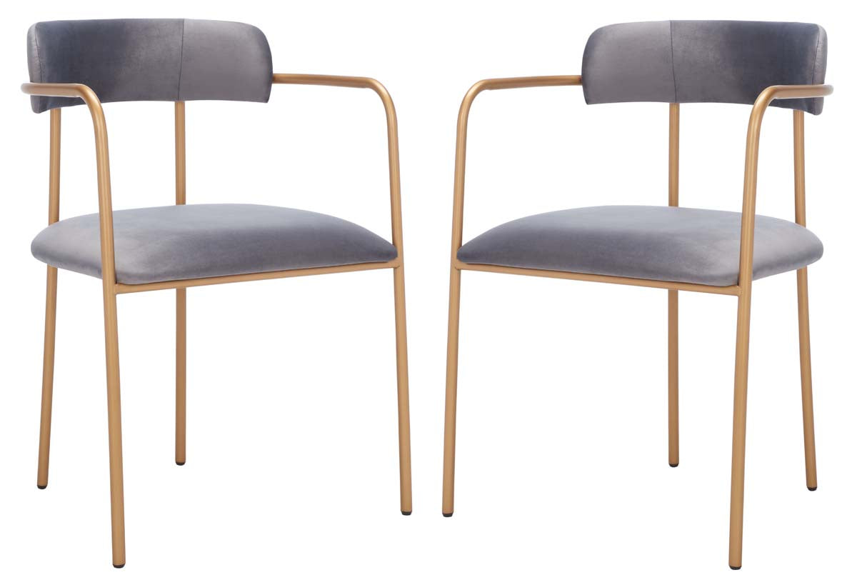 Camille Side Chair, Dark Grey Velvet / Gold | Safavieh - ACH6201