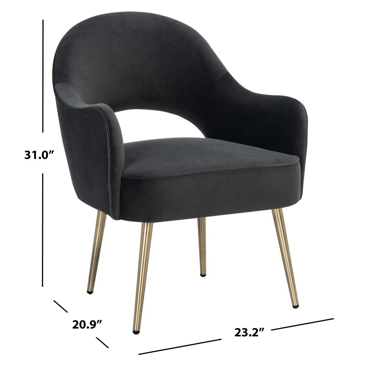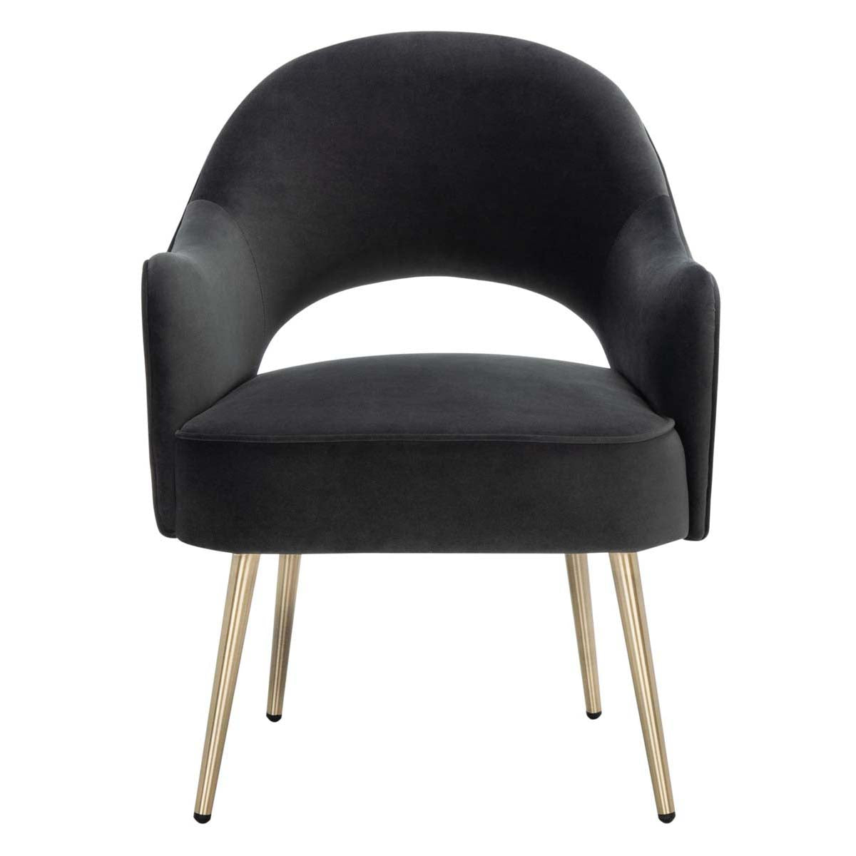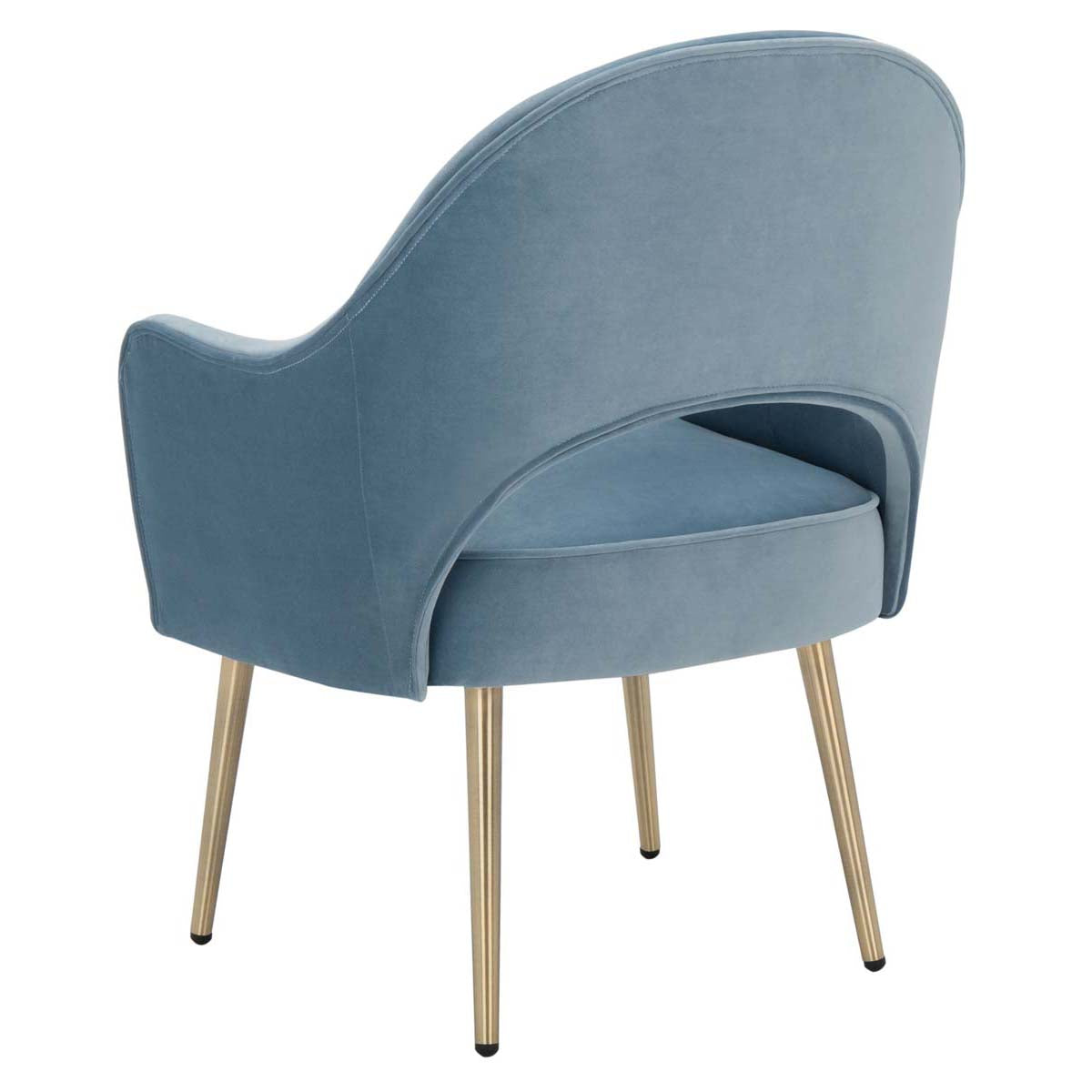 A glamorous modern take on retro charm, this Dublyn Accent Chair abounds with fashion-forward appeal. Dublyn redefines the classic club silhouette with a cut-out back and gently sculpted arms in luxuriously soft green velvet, while tapered gold metal legs complete the look.