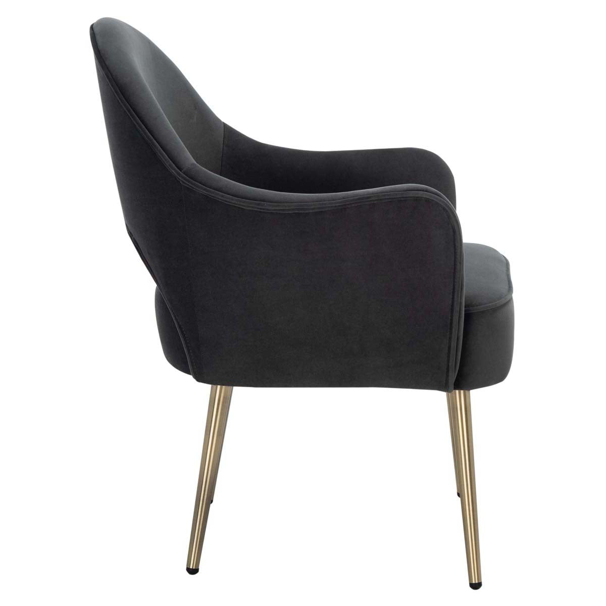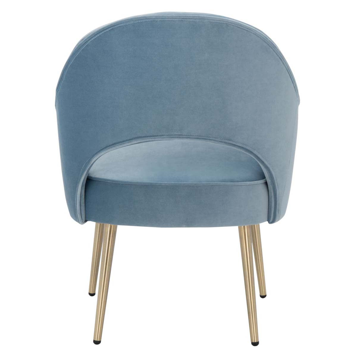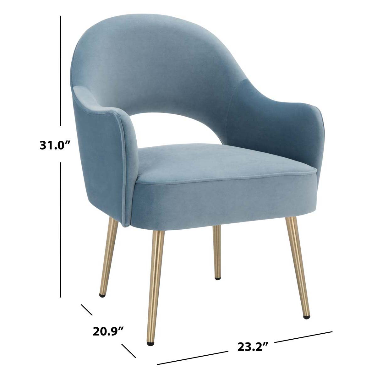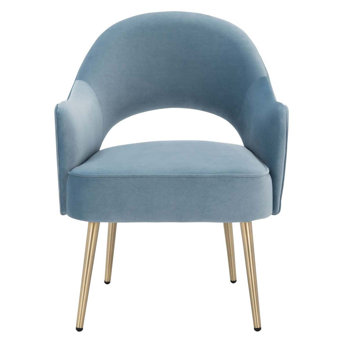 A glamorous modern take on retro charm, this Dublyn Accent Chair abounds with fashion-forward appeal. Dublyn redefines the classic club silhouette with a cut-out back and gently sculpted arms in luxuriously soft green velvet, while tapered gold metal legs complete the look.