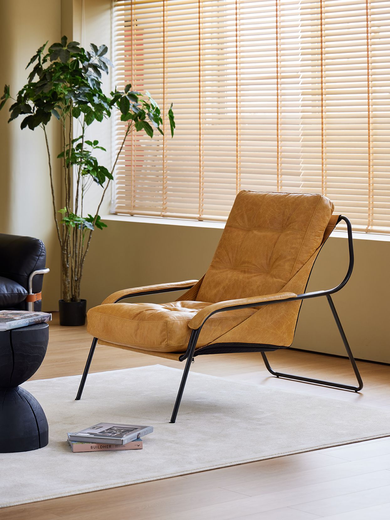 BREUER Lounge Chair Antique Rum Leather Charcoal Iron Powder Coated Legs | Mobital - LCH-BREU-ARUM-CHIR