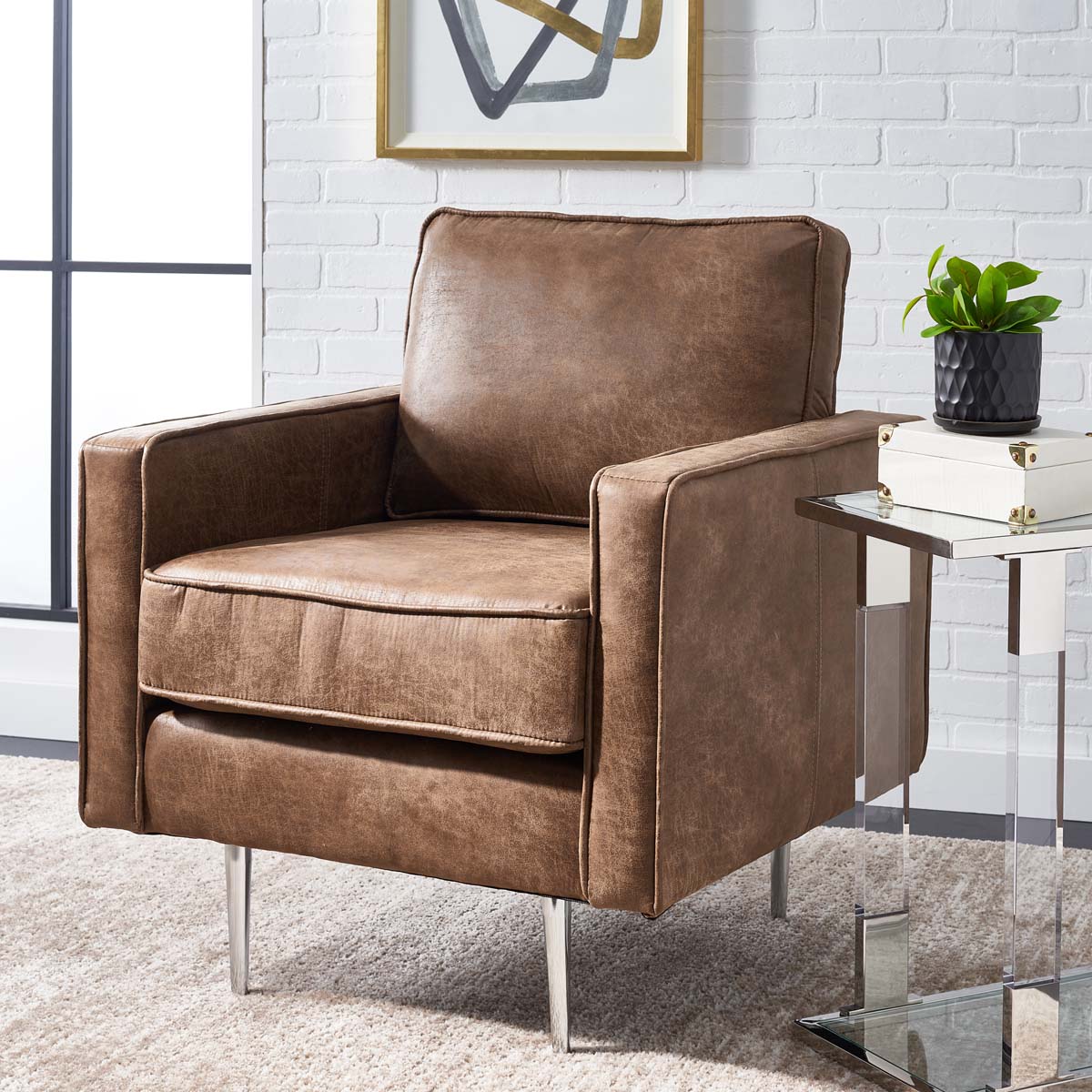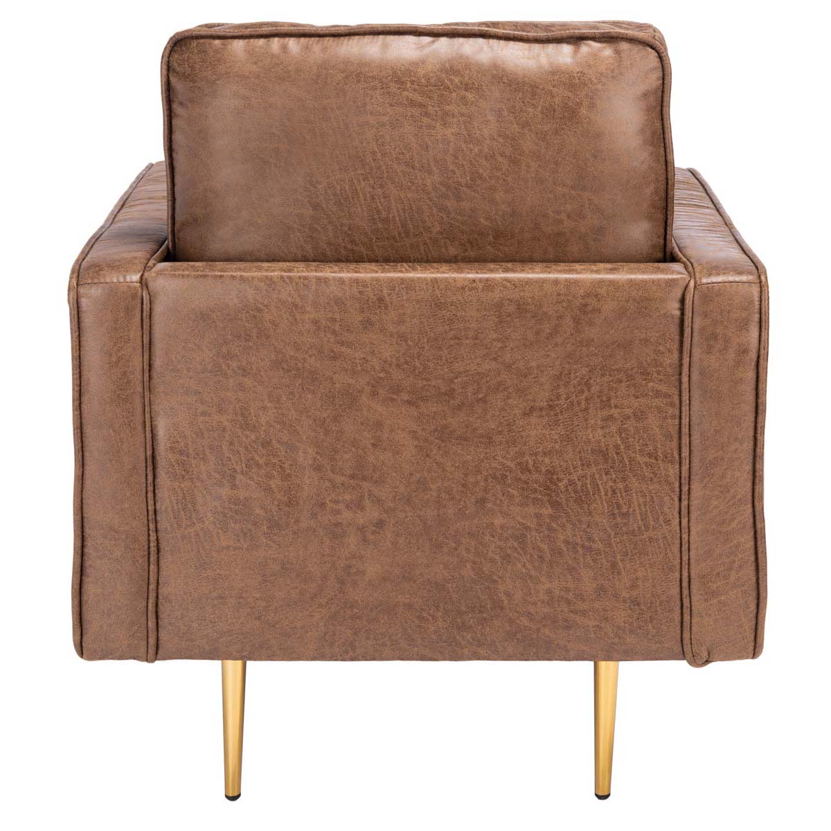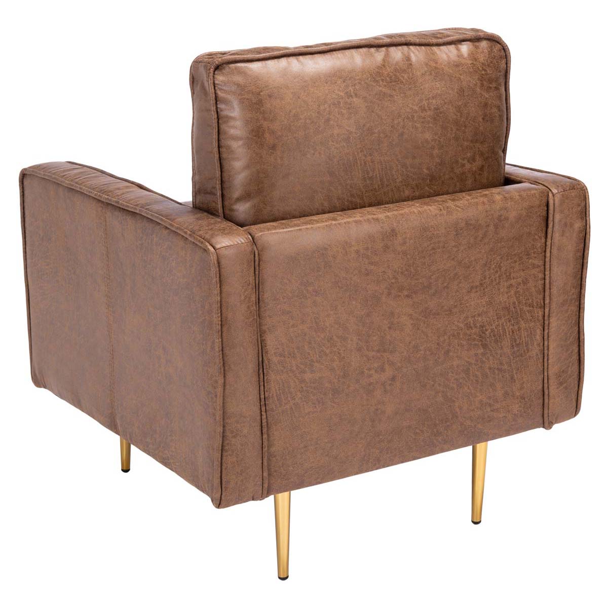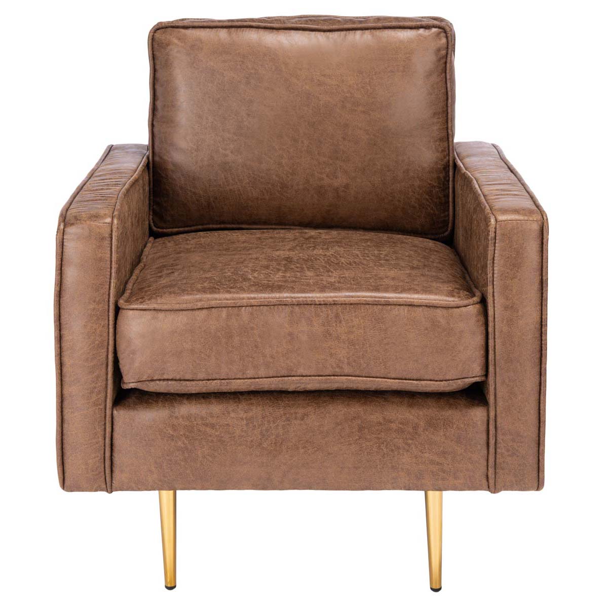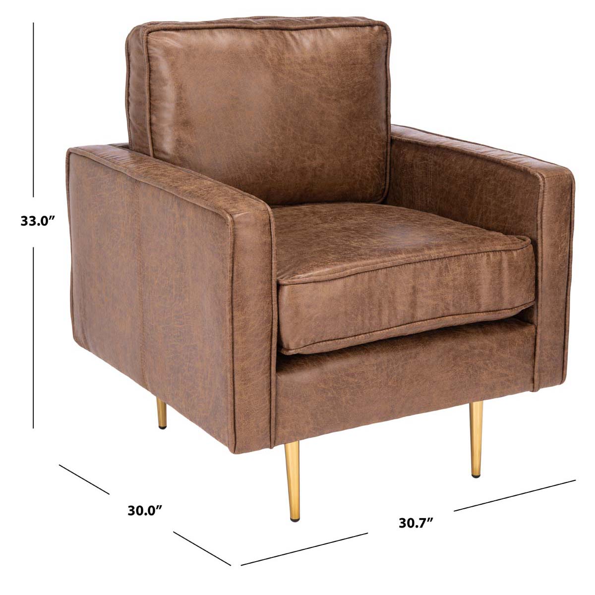 Traditional-style comfort is given a sleek modern upgrade in this phenomenal Paityn Accent Chair. Paityn's classic silhouette in plush rustic brown upholstery reaches new glamorous heights with shining gold metal legs, emanating a distinct designer look.