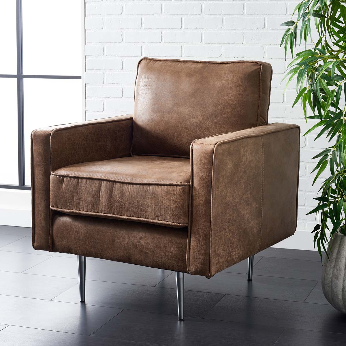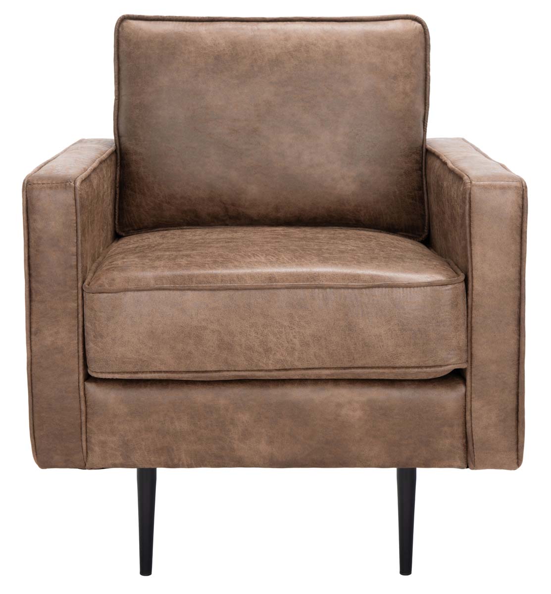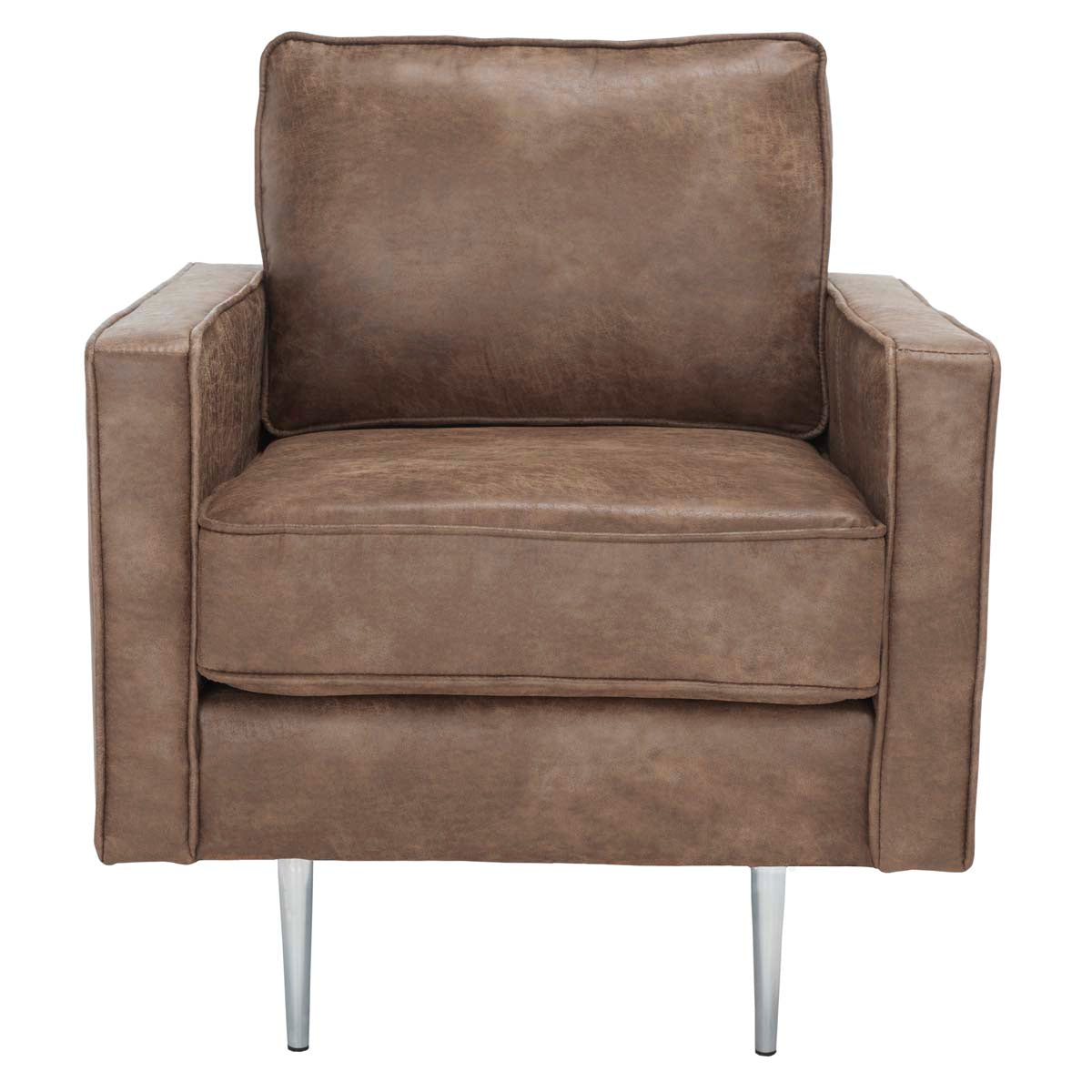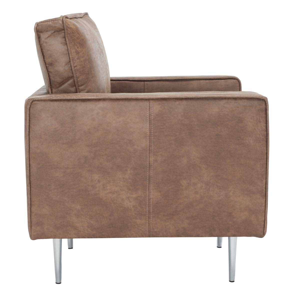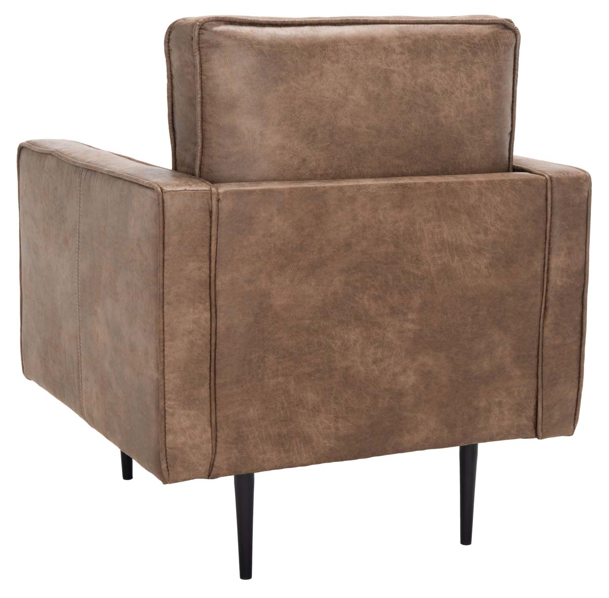 Traditional-style comfort is given a sleek modern upgrade in this phenomenal Paityn Accent Chair. Paityn's classic silhouette in plush rustic brown upholstery reaches new glamorous heights with shining gold metal legs, emanating a distinct designer look.