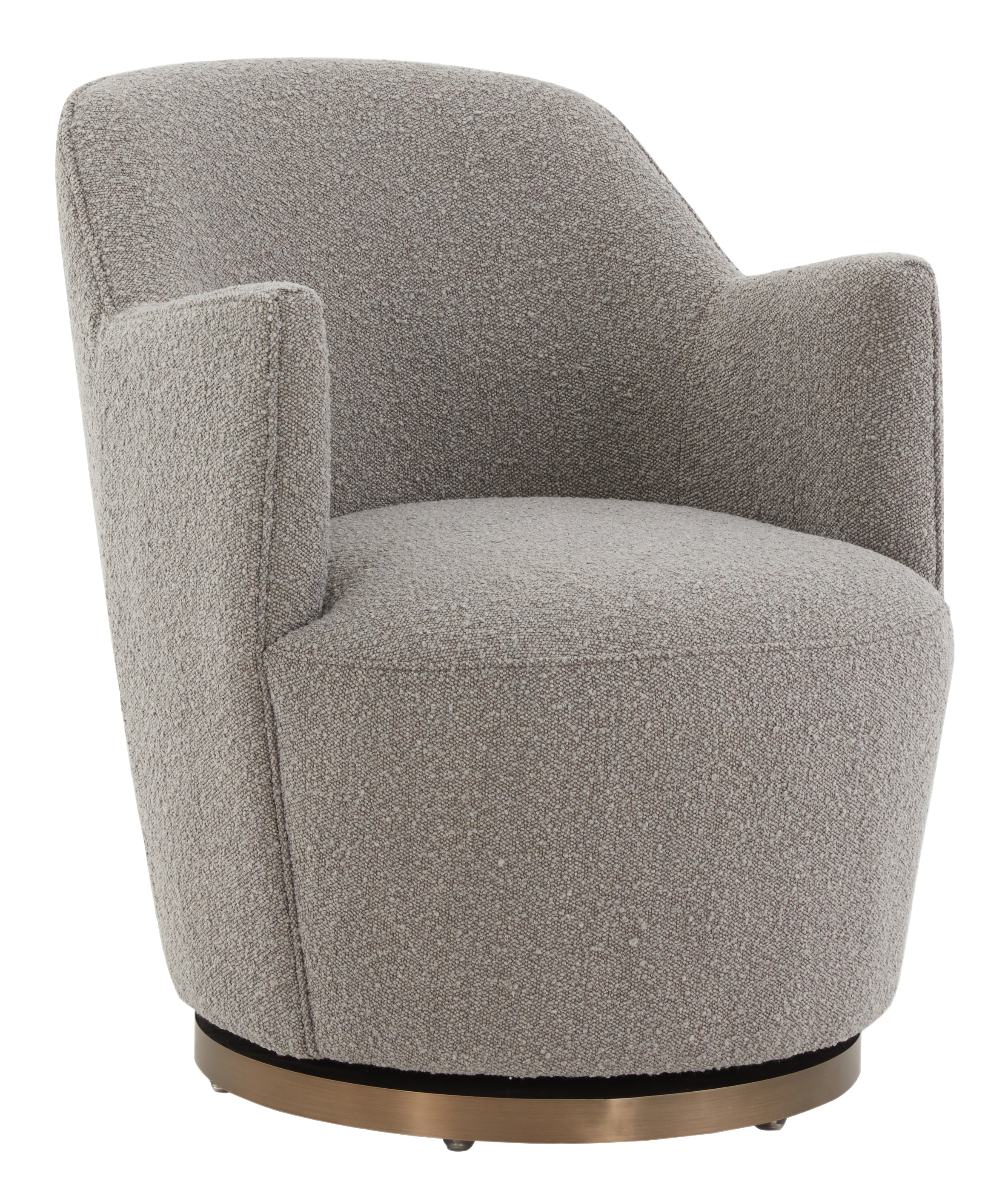 Introducing the Christian boucle swivel accent chair, a brilliant blend of comfort and elegance. Dressed in a soft fabric, this chair invites you to relax and unwind in style. The luxurious boucle texture is balanced by its sturdy construction with a wood and metal frame that provides dependable support. Designed with versatility in mind, the Christian chair features a smooth swivel function that makes it easy to turn and converse in any direction. The carefully crafted foam cushioning adds an extra layer of comfort, making this chair a delightful addition to your living room, office, or bedroom.
