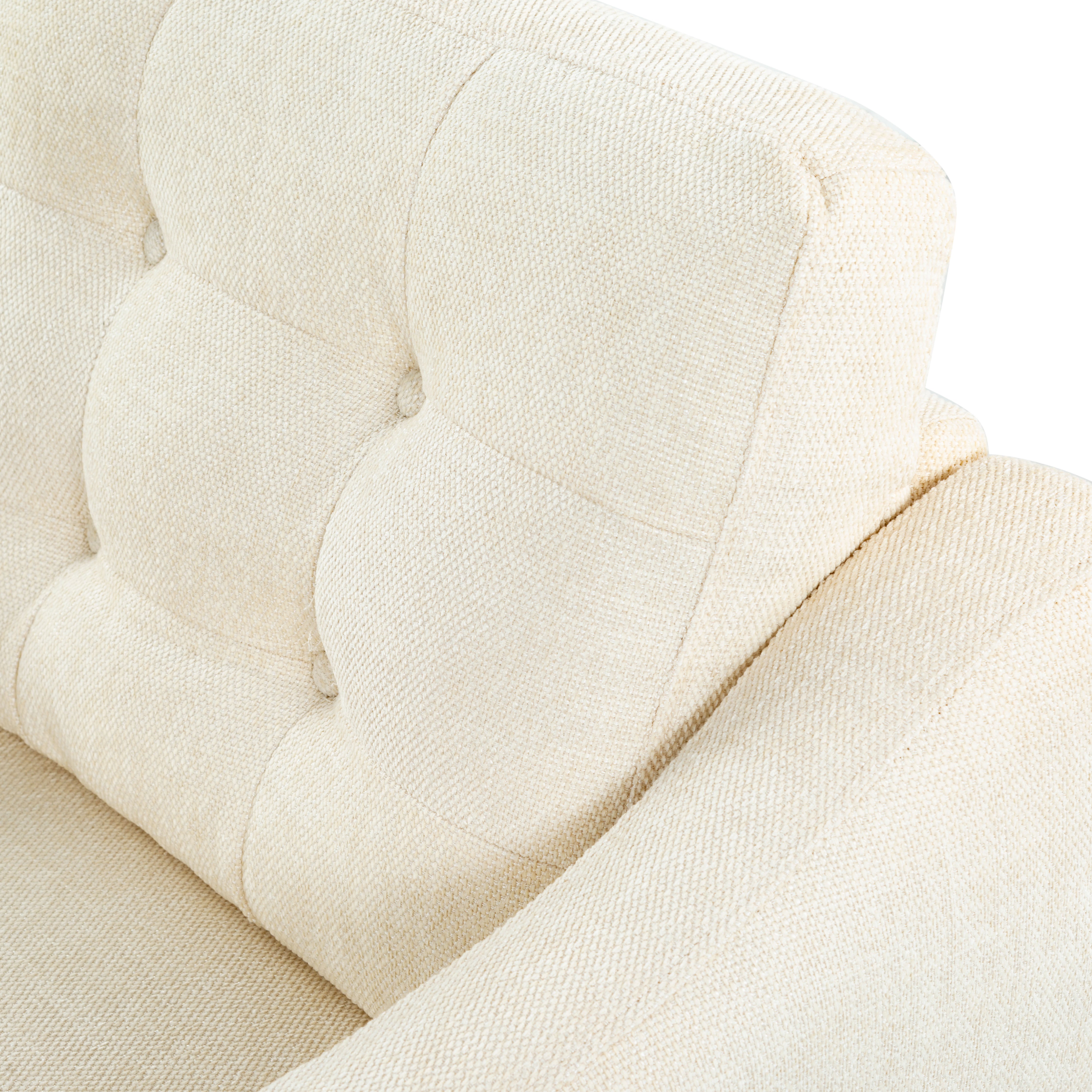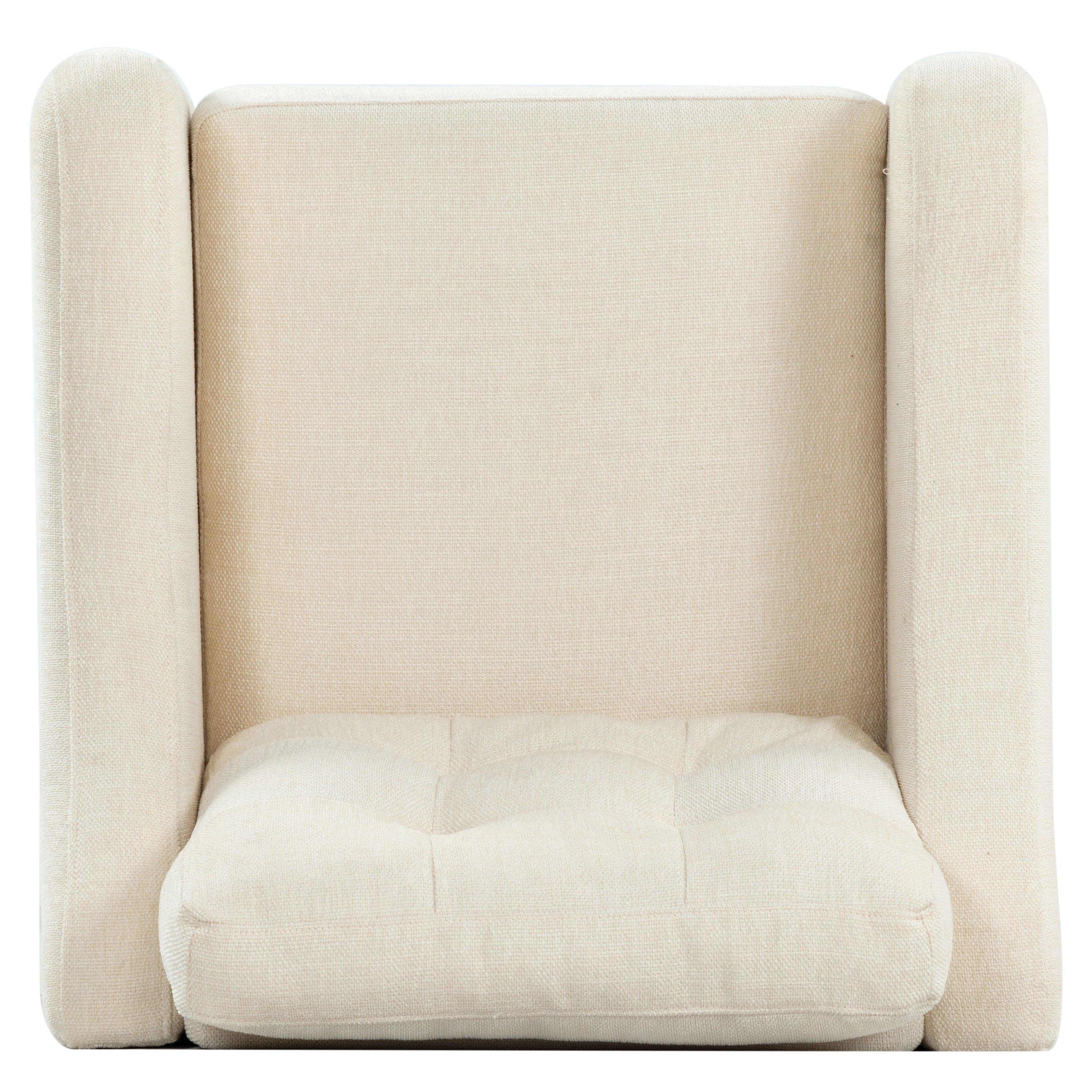 Introducing our Nathaniel Tufted Back Accent Chair in Cream. This stunning piece effortlessly marries style and comfort, making it an ideal addition to your living space, study, or bedroom. Adorned with a sophisticated tufted back and standing tall on sturdy legs, this chair adds an undeniable charm to any room. Upholstered in chic cream-colored fabric, it injects a soothing ambiance and a dash of elegance to your decor. Fabricated from 100% polyester, it is built for durability and easy maintenance, offering you a hassle-free experience. With the Nathaniel Accent Chair in your space, you are not just investing in a piece of furniture, but a style statement that is wonderfully remarkable in its simplicity. Transform your living space with the Nathaniel Accent Chair in Cream, where style meets comfort at its best. Your space deserves nothing less than this delightful piece of art.