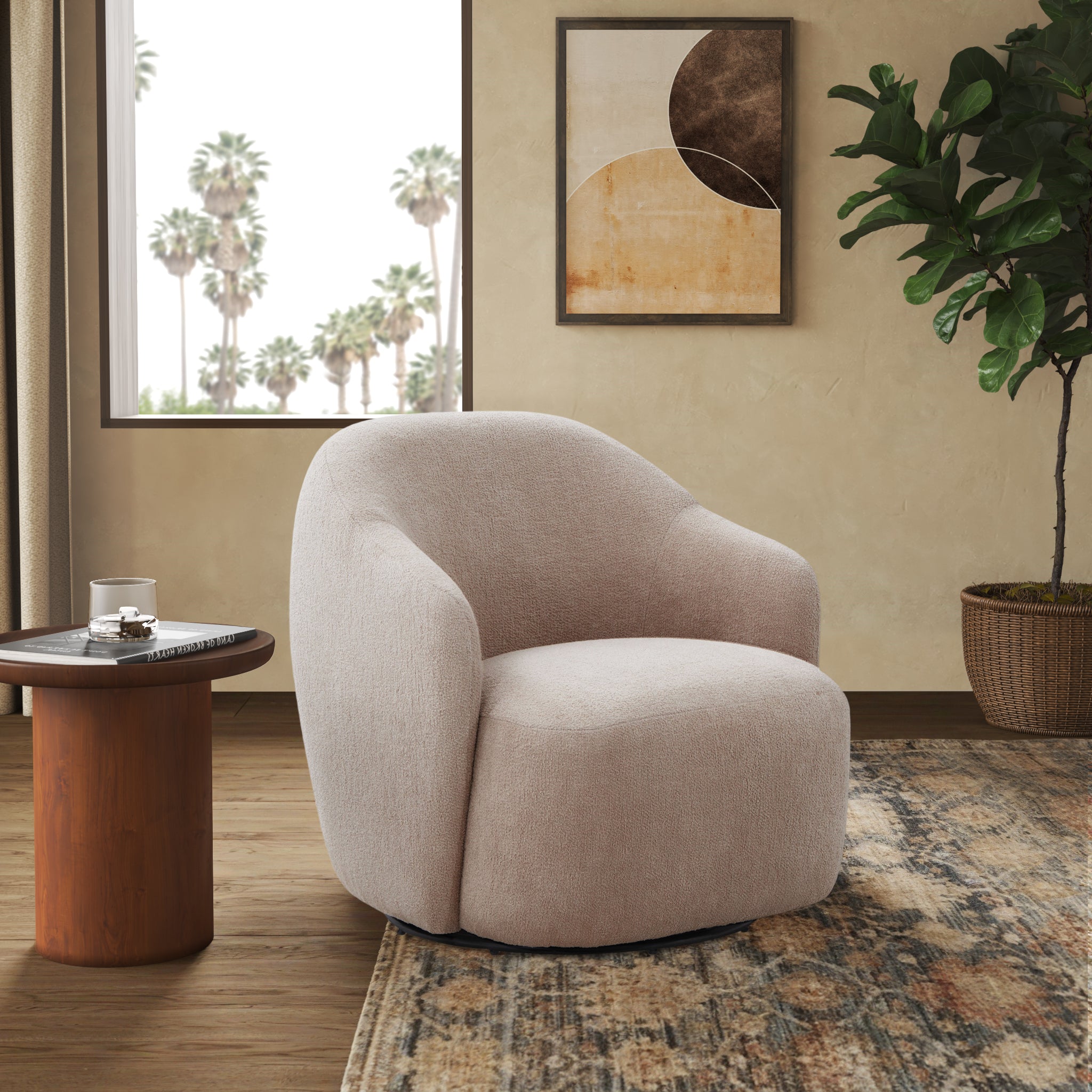 Introduce an element of charm and elegance to your living space with our Peitra Boucle Accent Chair. This immaculate accent piece brings tasteful sophistication to any room. Its sturdy Plywood frame is complemented by an Iron construction that ensures reliable support and stability, giving you confidence in your furniture choice. Upholstered in lush Boucle fabric, composed of 100% Polyester, this accent chair offers a delightful texture that's as comfortable as it is striking. Discover relaxation and style in equal measure with the Peitra Boucle Accent Chair.
