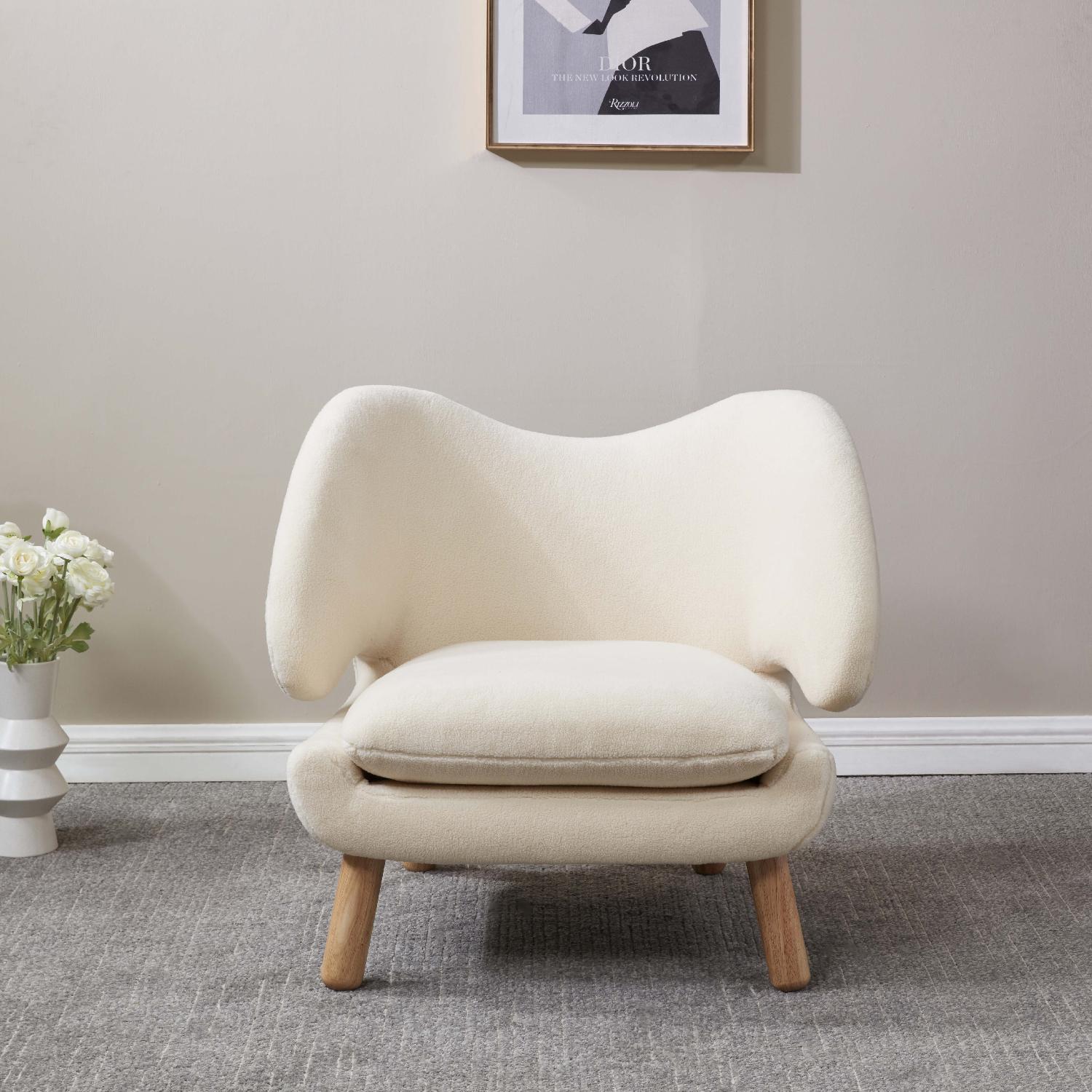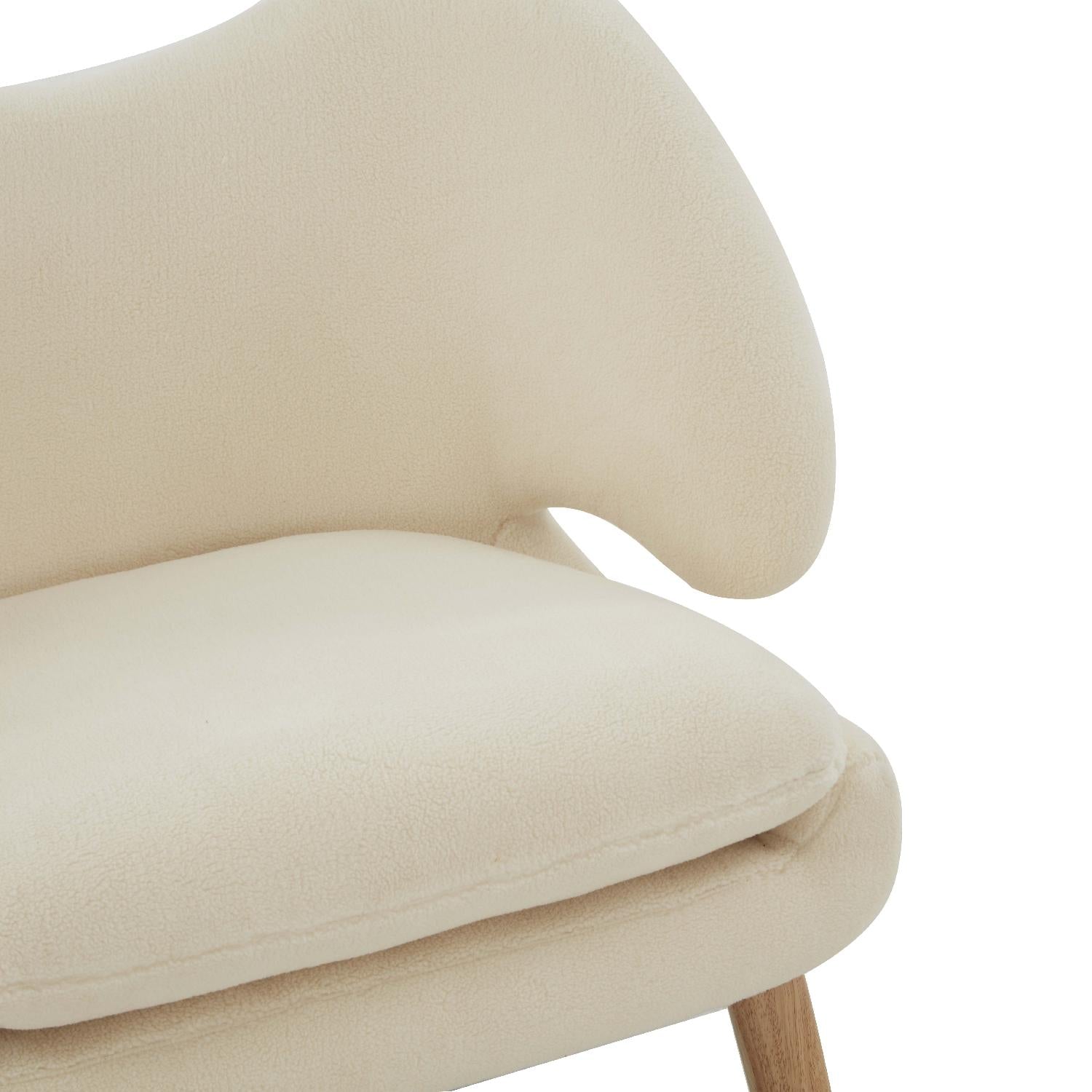 Step up the style and lounging factor of your home with the Felicia accent chair. Featuring sensuous, low-slung curves, our chair attains a modern and sculptural silhouette. Perched upon birchwood legs with a reclined and sheltering back, the chair embraces a relaxed profile. Its tight and generously padded seat is upholstered in faux shearling to amp up the comfort level. A perfect blend of functionality and eye-catching beauty, our accent chair remains a true statement piece.