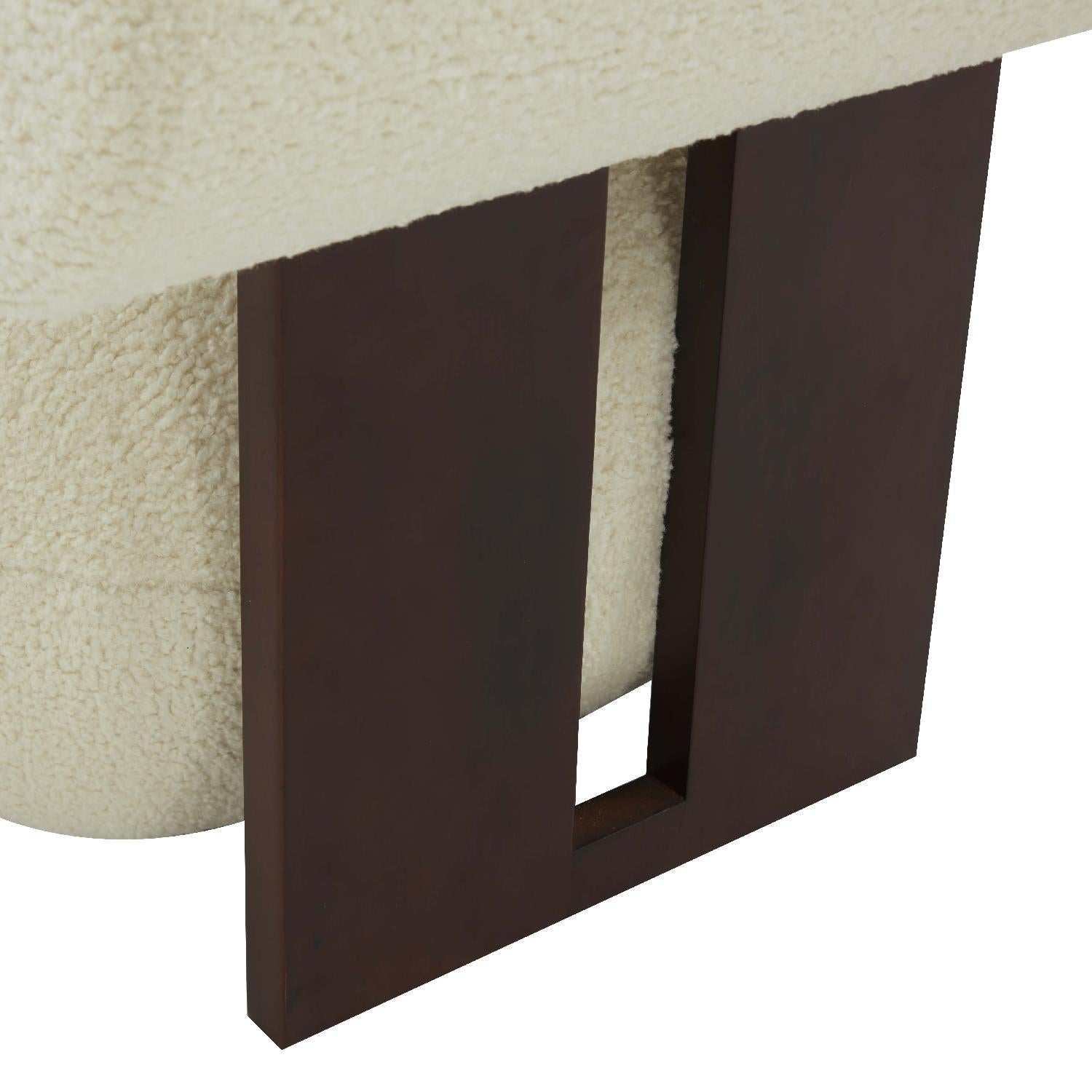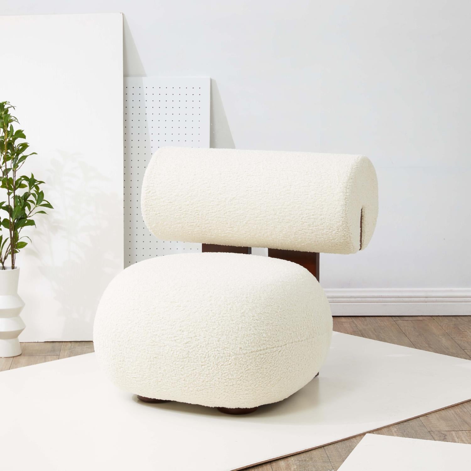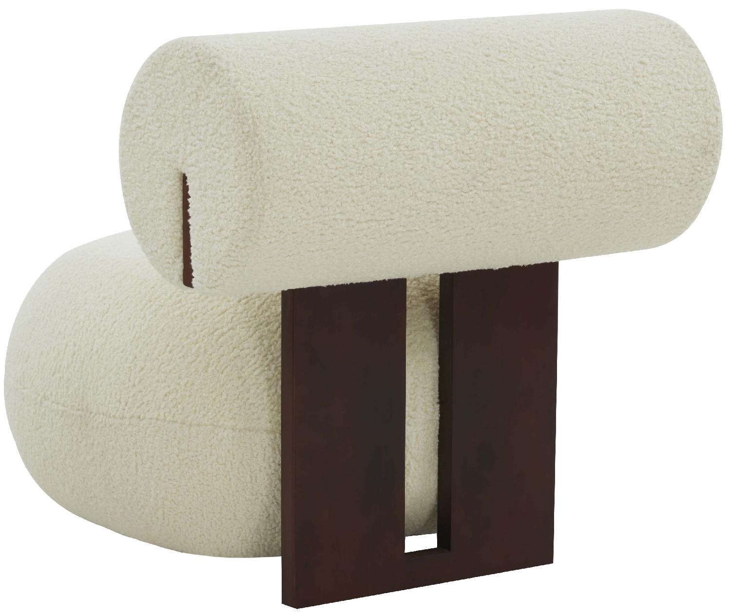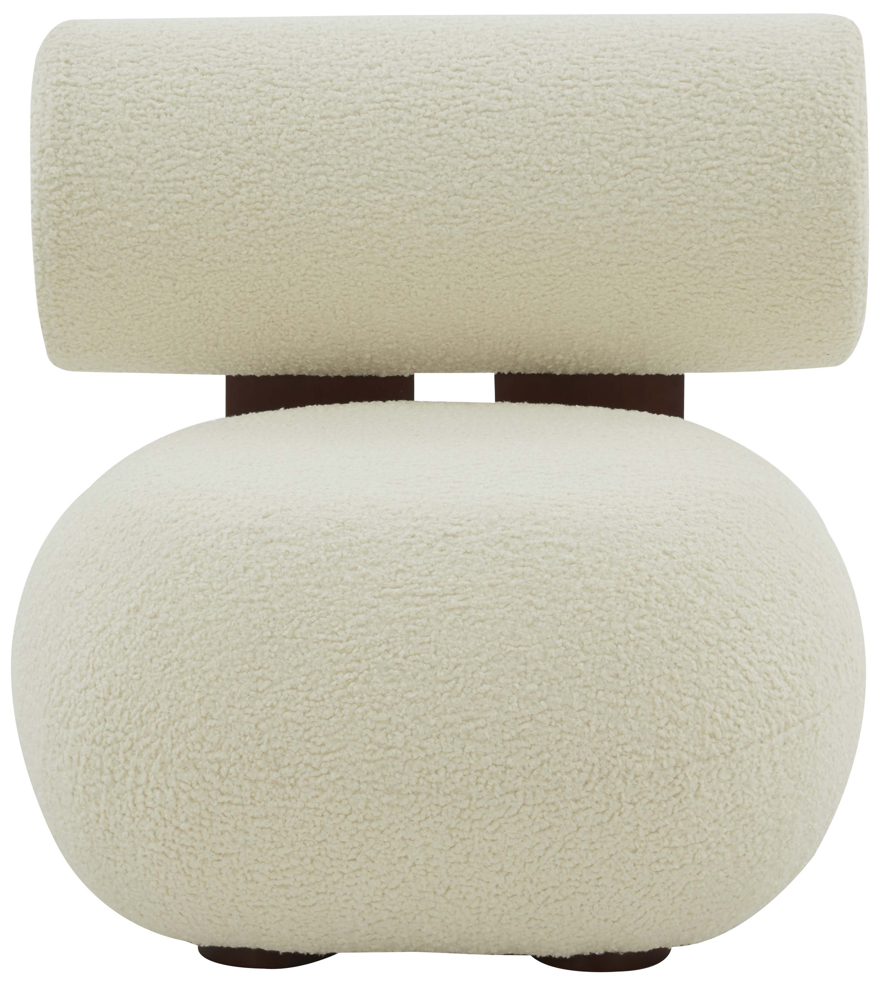 Make a bold and modern style statement with our Kamaria accent chair. Plush and generously cushioned, our accent chair evokes drama with its voluminous contours. Its curvaceous upholstery creates a sleek contrast with its minimal pinewood frame and legs. Our playful and charming accent chair is neatly upholstered in faux shearling to bring cozy comfort to any corner. Upholstered in a graceful ivory shade, the low-slung chair effortlessly invites reading and lounging.