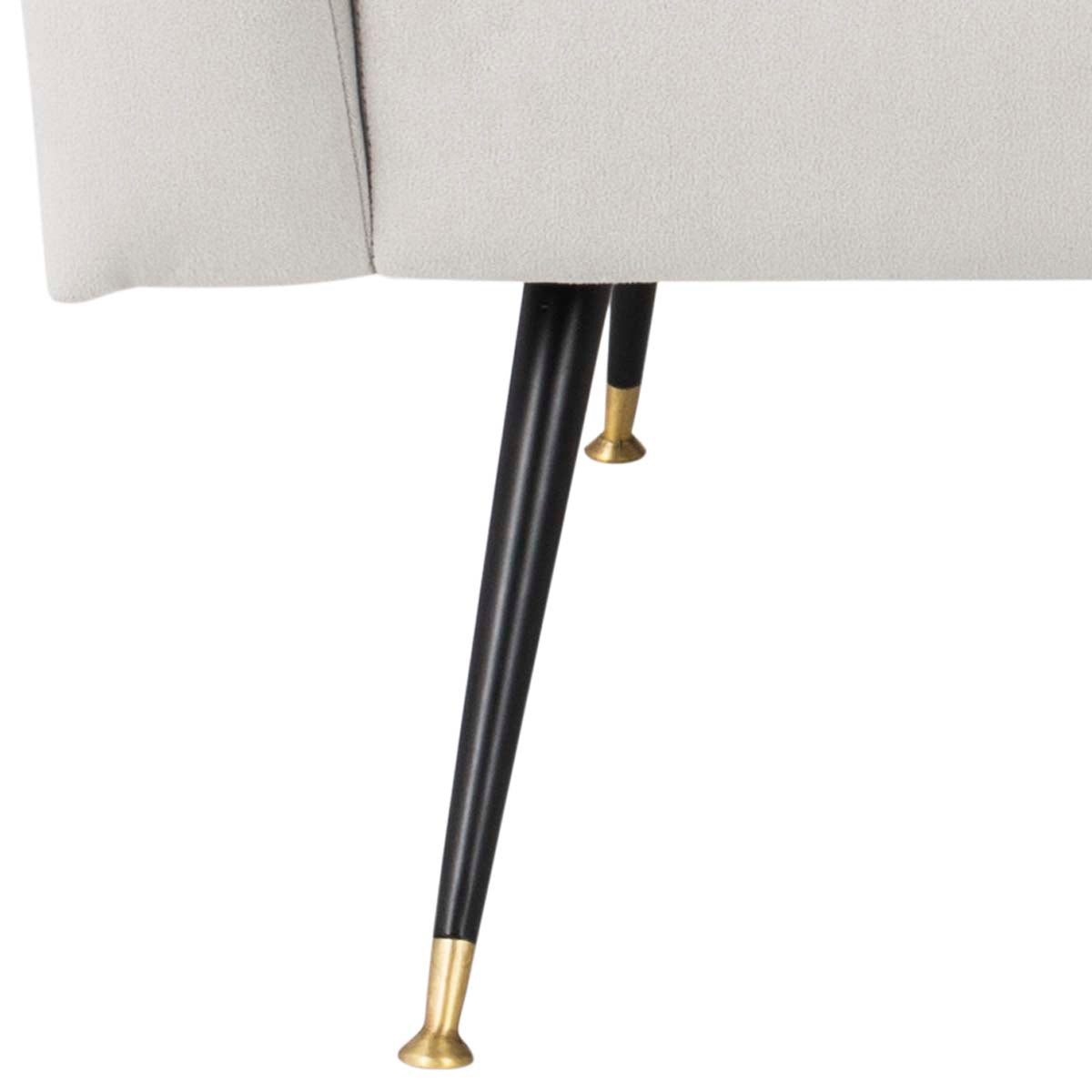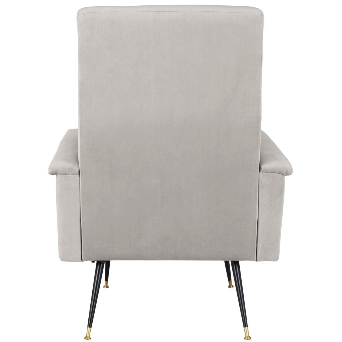 Energized with the optimism of Mid Century Modern style, this retro accent chair was inspired by the iconic furnishings of top American designers. Futuristic angles upholstered in brilliant grey velvet and chic gold cap legs make it a design classic.