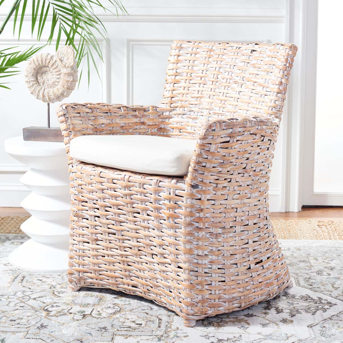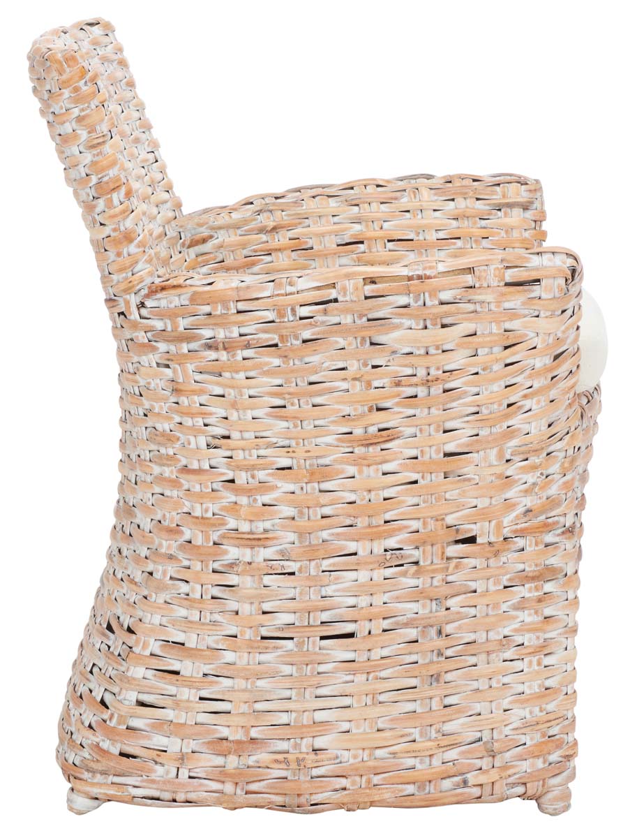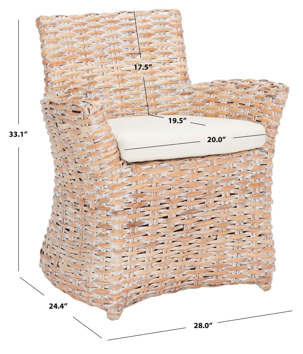 Safavieh Cabana Rattan Arm Chair - White Wash/ White Cushion