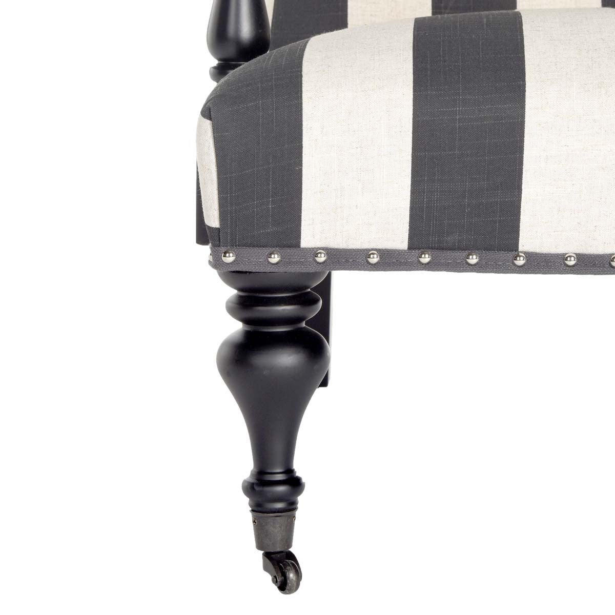 Safavieh Devona Awning Stripe Arm Chair - Silver Nail Heads - Charcoal / White
