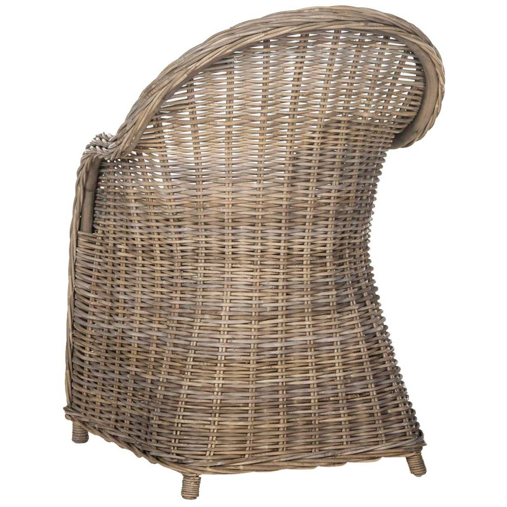 The classic wicker club chair is refreshed for the modern eye in this chic grey kubu rattan club chair. Woven for an open, airy look, this transitional design has softened rolled arms that curves from the top of the chair to its graceful rounded legs.