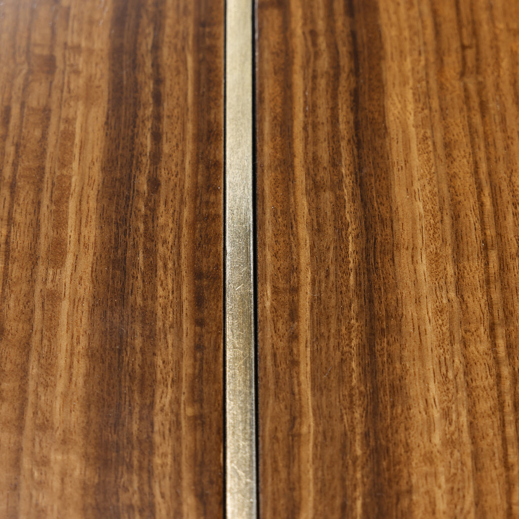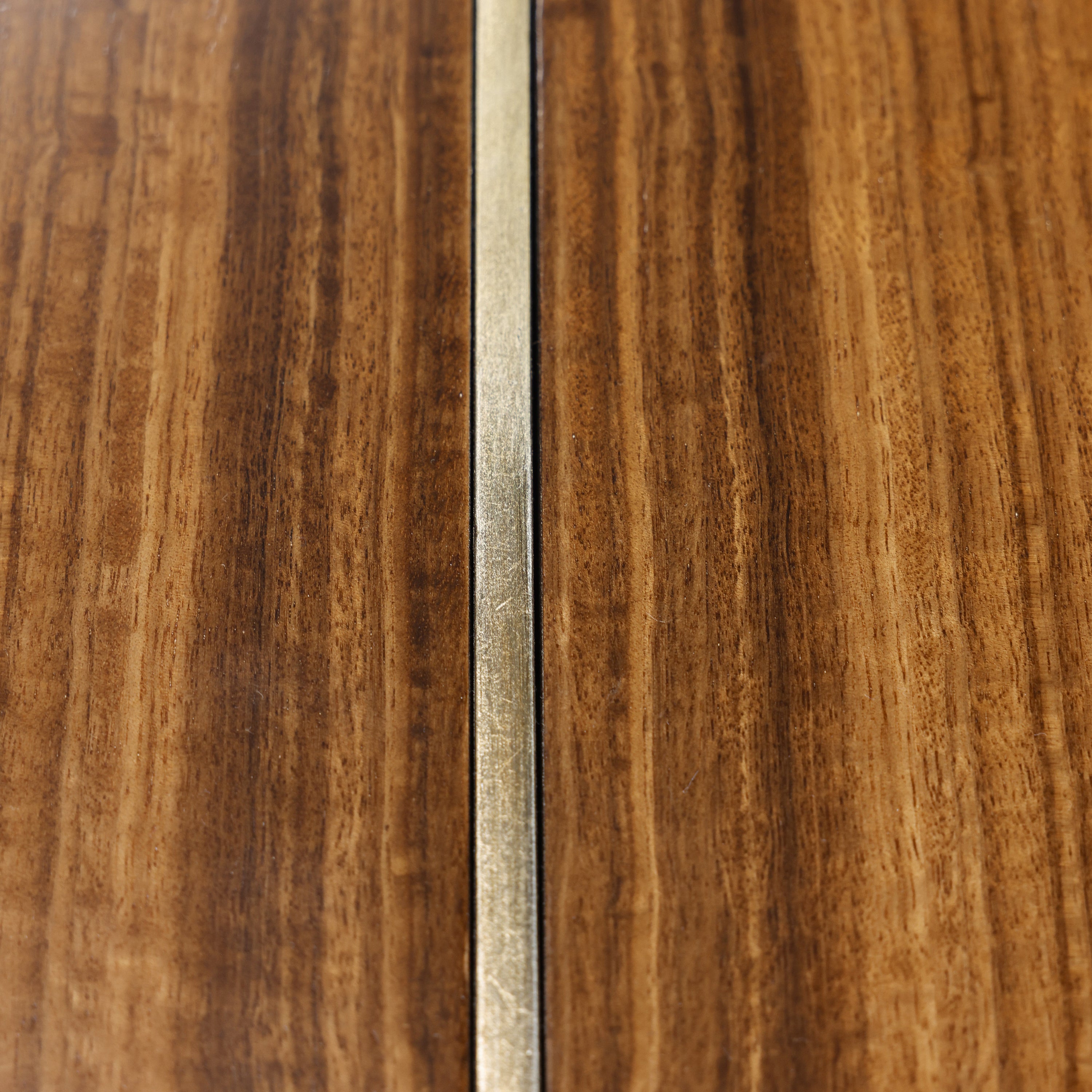 The Altillo Console Table is a gorgeous statement piece that demonstrates a stylish use of negative space. Two rectangular surfaces of Light Smoked eucalyptus wood are separated by two textural steel legs in a Rose Silver finish, creating a stylish juxtaposition between natural and metallic tones. The legs are affixed at offset angles to result in a dynamic, asymmetric look that elevates an interior space.