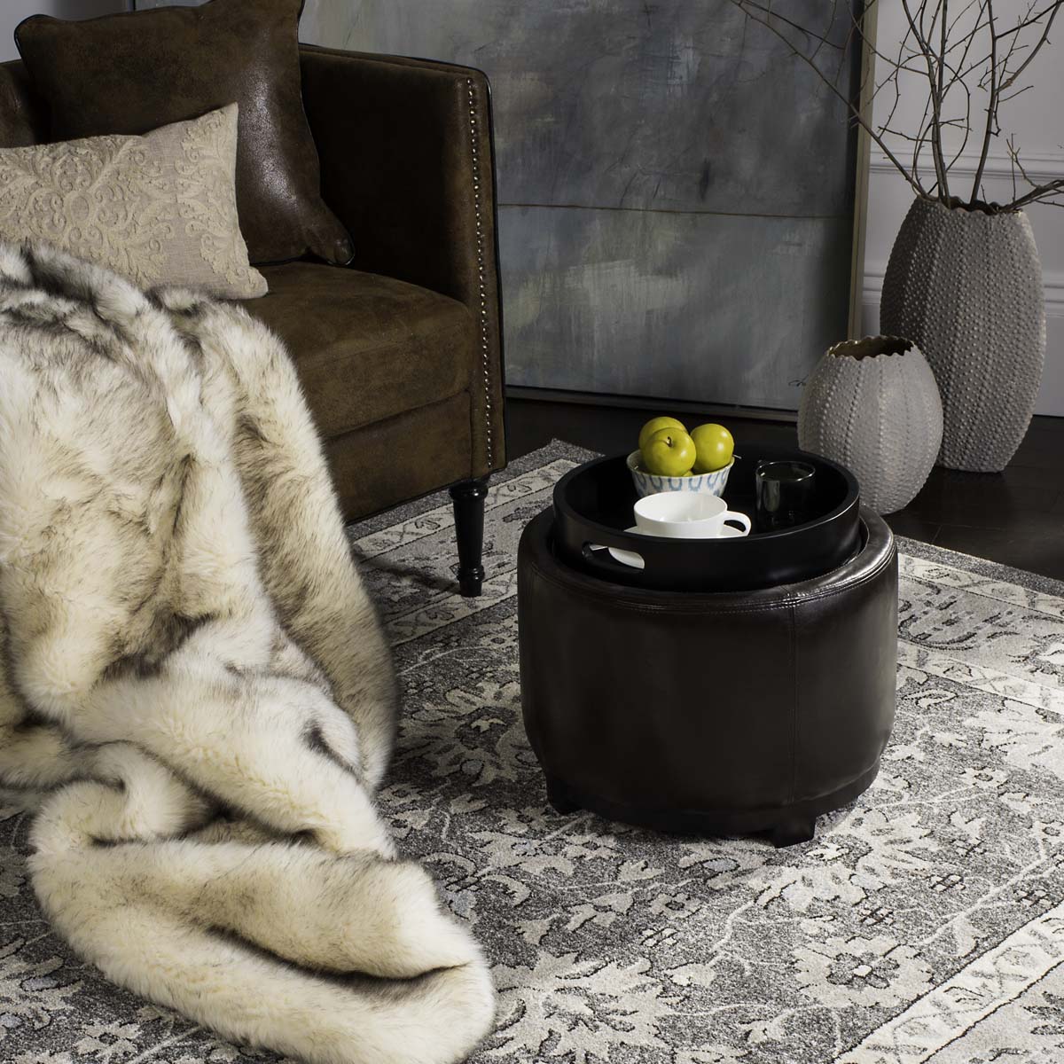 Chelsea Round Tray Ottoman | Safavieh - HUD8232
