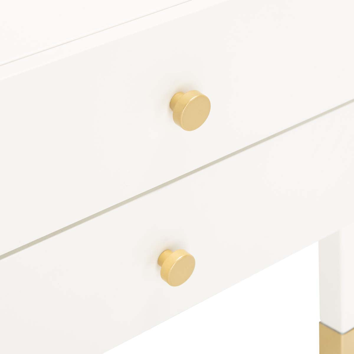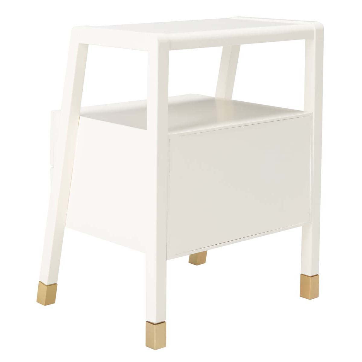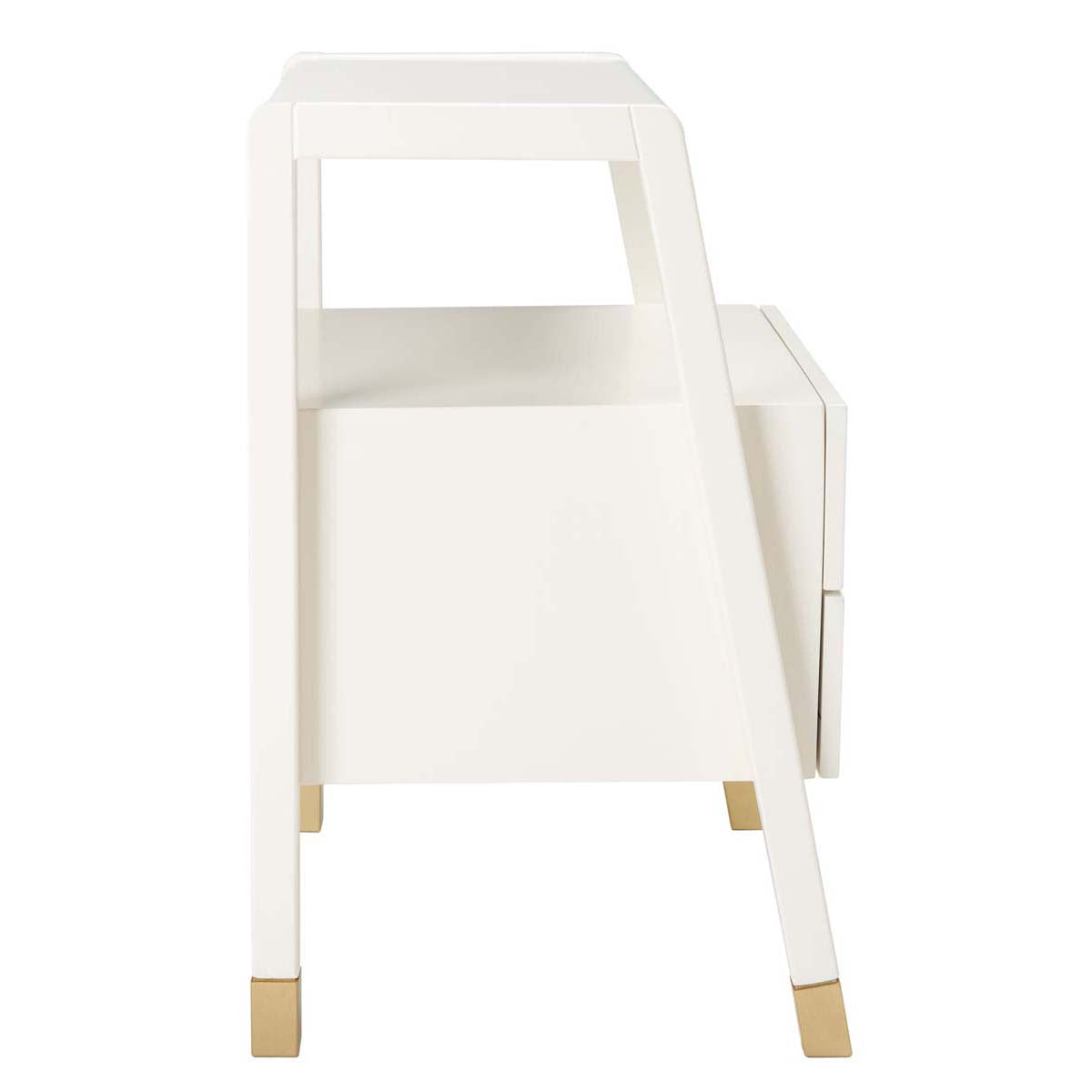 Give your d?cor a touch of glam with this contemporary-chic Cove Accent Table. Cove?? angled white frame creates eye-catching depth in its unexpected silhouette, and gold steel accents provide high-style artistic contrast. Designers love the extra storage of its two drawers and one shelf.