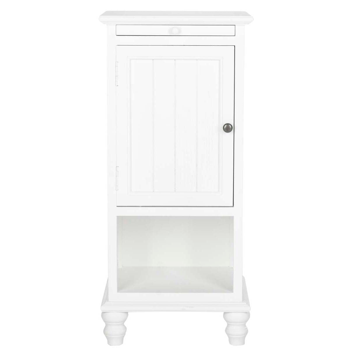 The Jezabel End Table evokes Early American style with its bead board inspired cabinet door, pullout shelf, and turned bun feet. Constructed of white poplar wood, Jezabel's roomy cabinet and lower storage space makes stashing remotes or magazines a breeze.