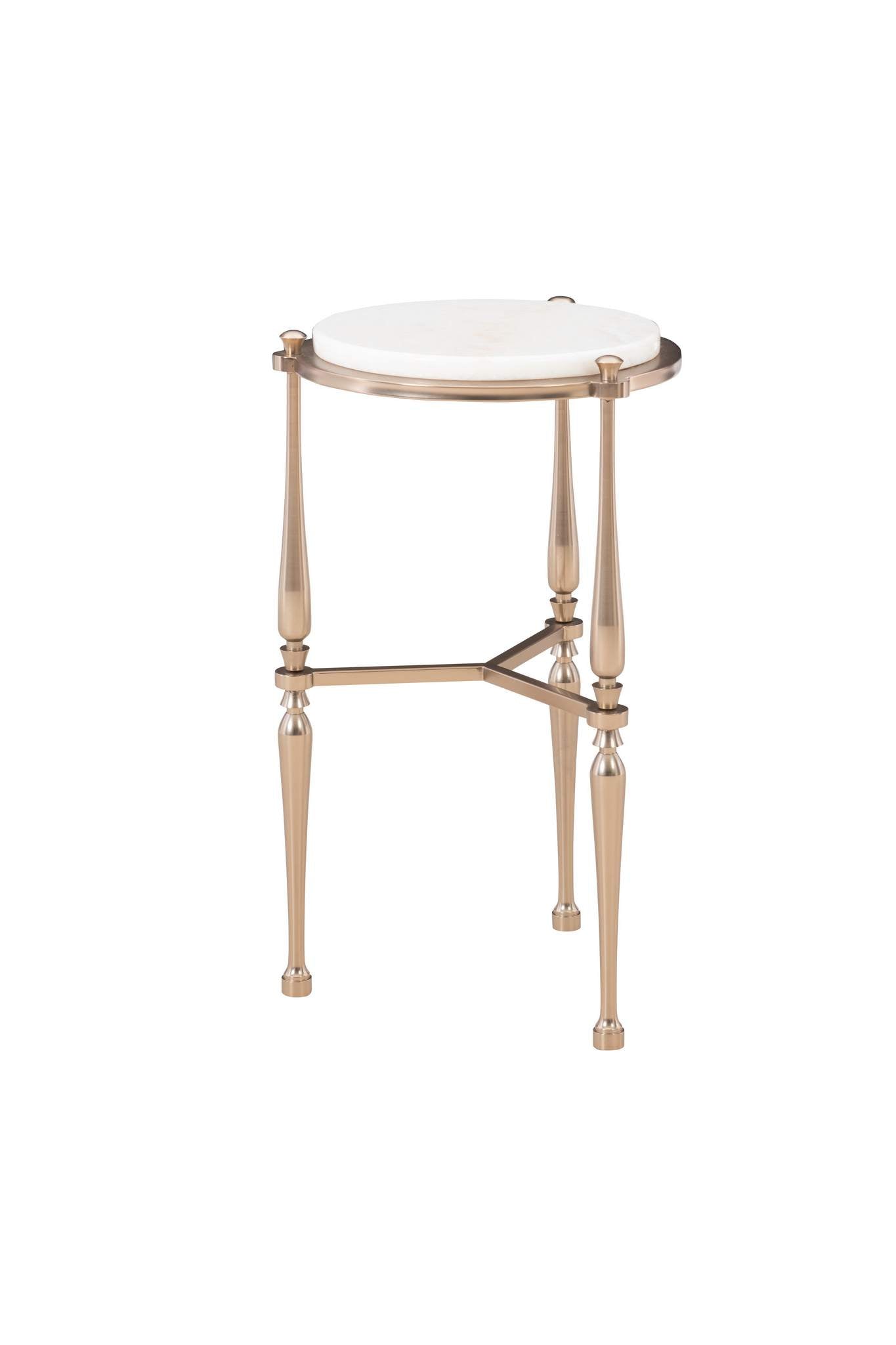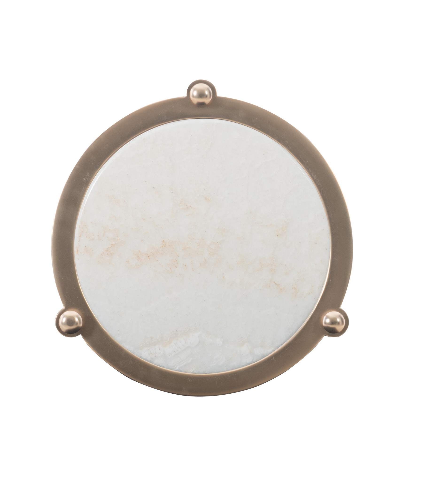 The Kelli Occasional collection is the jewelry to any room. Constructed of delicately turned metal legs and a metal frame supporting a, sealed, vanilla onyx stone top. Stocked in a Kelli White Bronze metal finish. This metal finish is a chameleon in that it tends to be more brass in warm settings and more silver in cooler settings. It is a versatile metal finish that will compliment a range of aesthetics. The Kelli Spot table is the perfect accent to any space. Vanilla Onyx boasts beautiful veins ranging from ivory to earthy cashmere tones. No two pieces of onyx will be the same and the variance in the colors is what make this stone stunning.