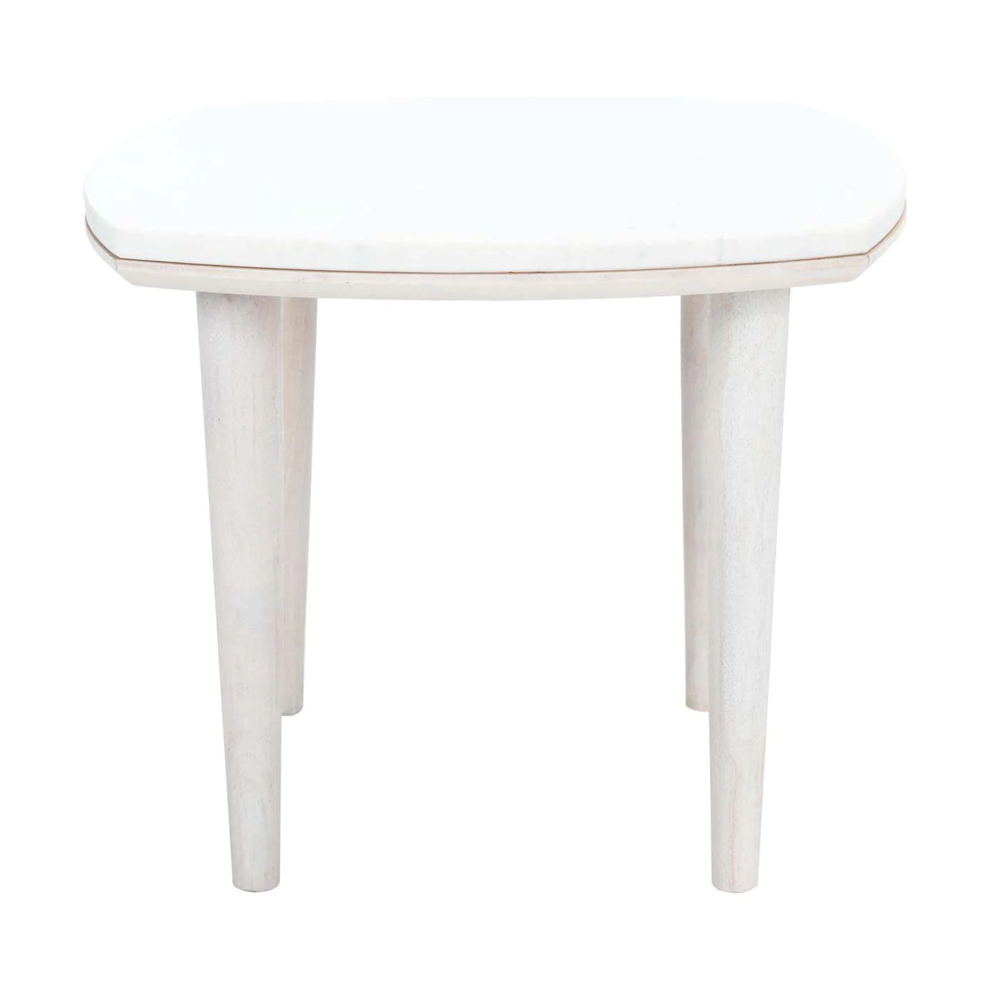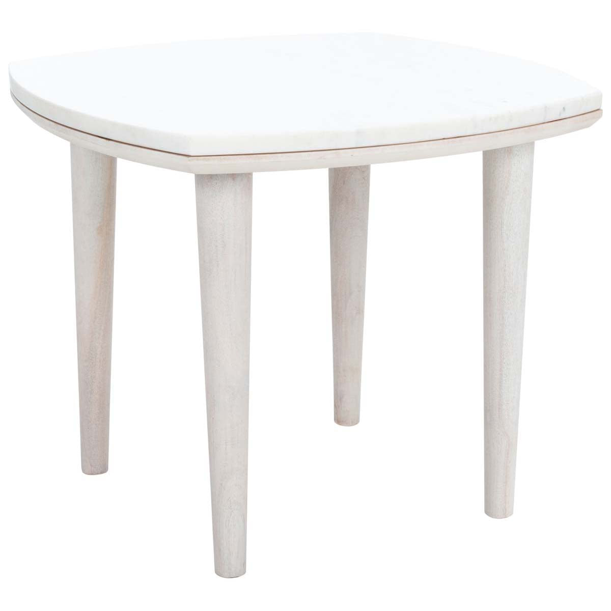 The Lara Side Table is a striking study in mixed media craftsmanship. A clean white marble top is paired with tapered acacia wood legs in a whitewash finish, bringing both a sense of glamour and farmhouse charm to any d??cor. Lara is often used in pairs to frame a sofa, elevating any rooms aesthetic.
