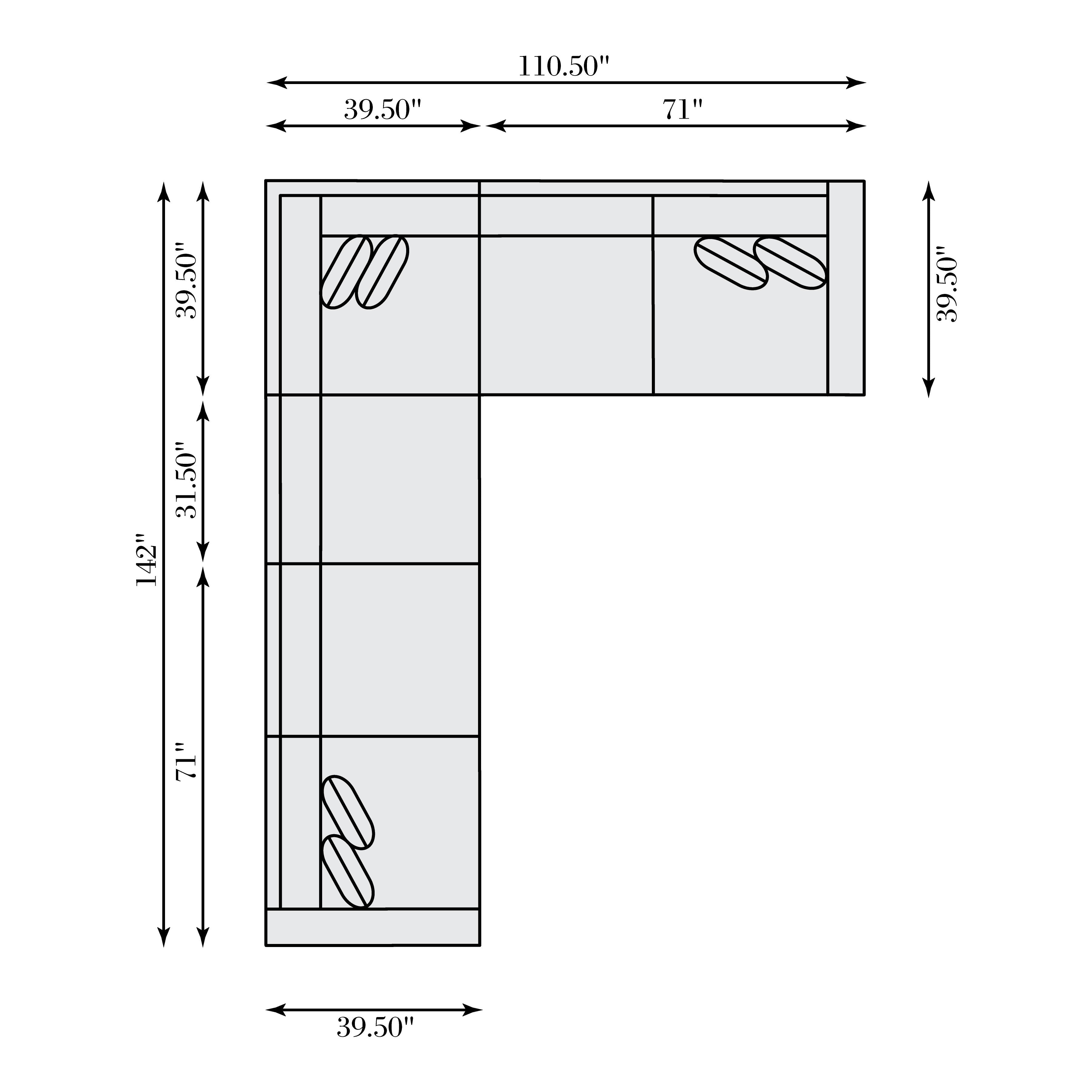 Straight lines are softened with gentle curves on the Lars sectional, complementing the wide track arms and bold silhouette. Plushly deep seat cushions and box-edge weltless bordered back pillows craft a comfort destination. Wide block feet take a stance in textured wood.