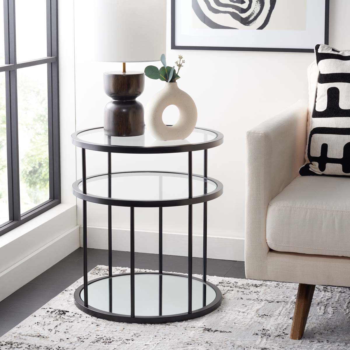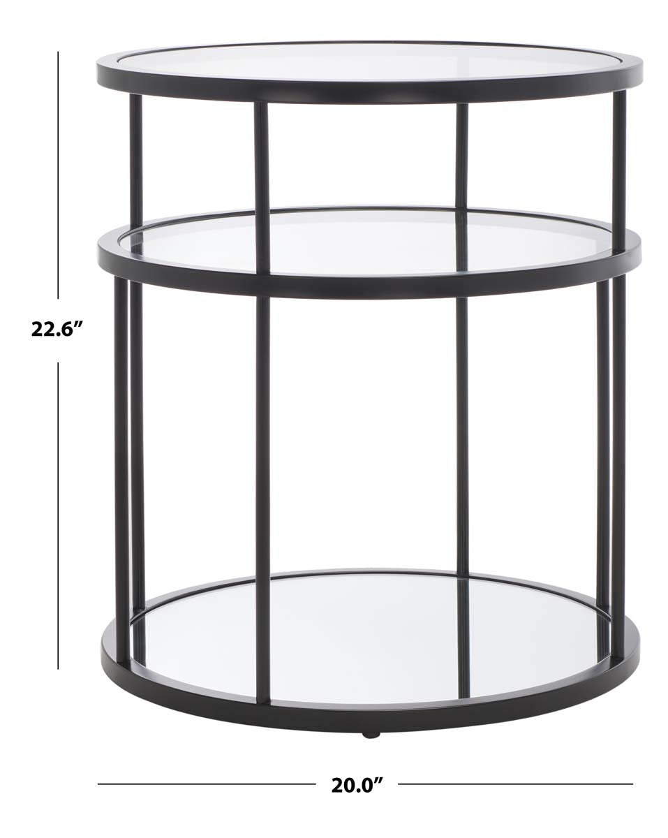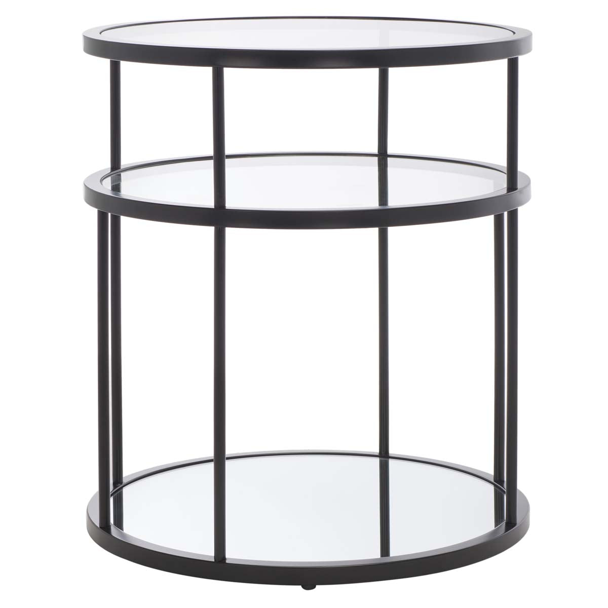 The Roaring Twenties are back, and this lavish Layta Accent Table brings a touch of Art Deco decadence to any modern interior. Layta?s two glass tiers and mirrored bottom shelf reflect unbridled chic, and a matte black finish highlights its high-fashion appeal.